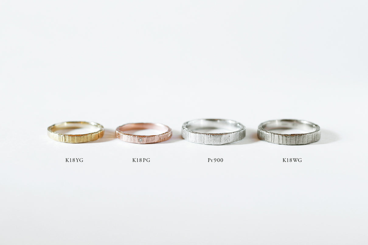 リングの素材はPt900(プラチナ) 、 K18YG(イエローゴールド) 、K18WG(ホワイトゴールド)、K18PG(ピンクゴールド)よりお選びいただけます。