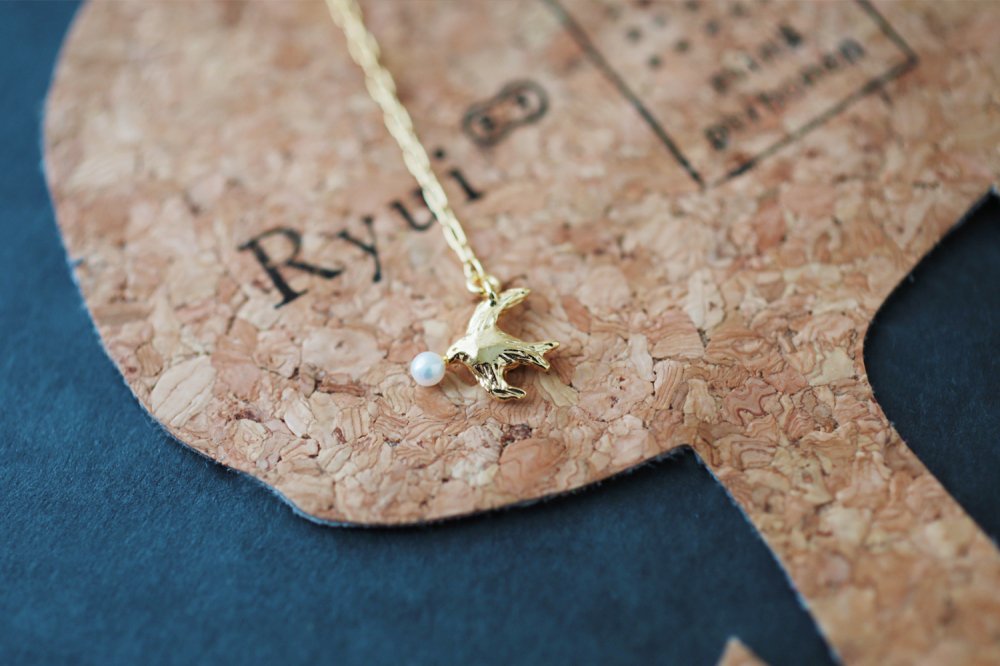 material : 布 , コルク ( 本体 ) / 合金 + 金メッキ , 淡水パール ( 鳥 )