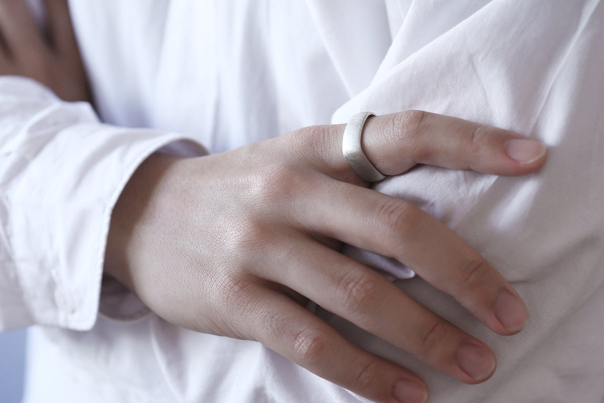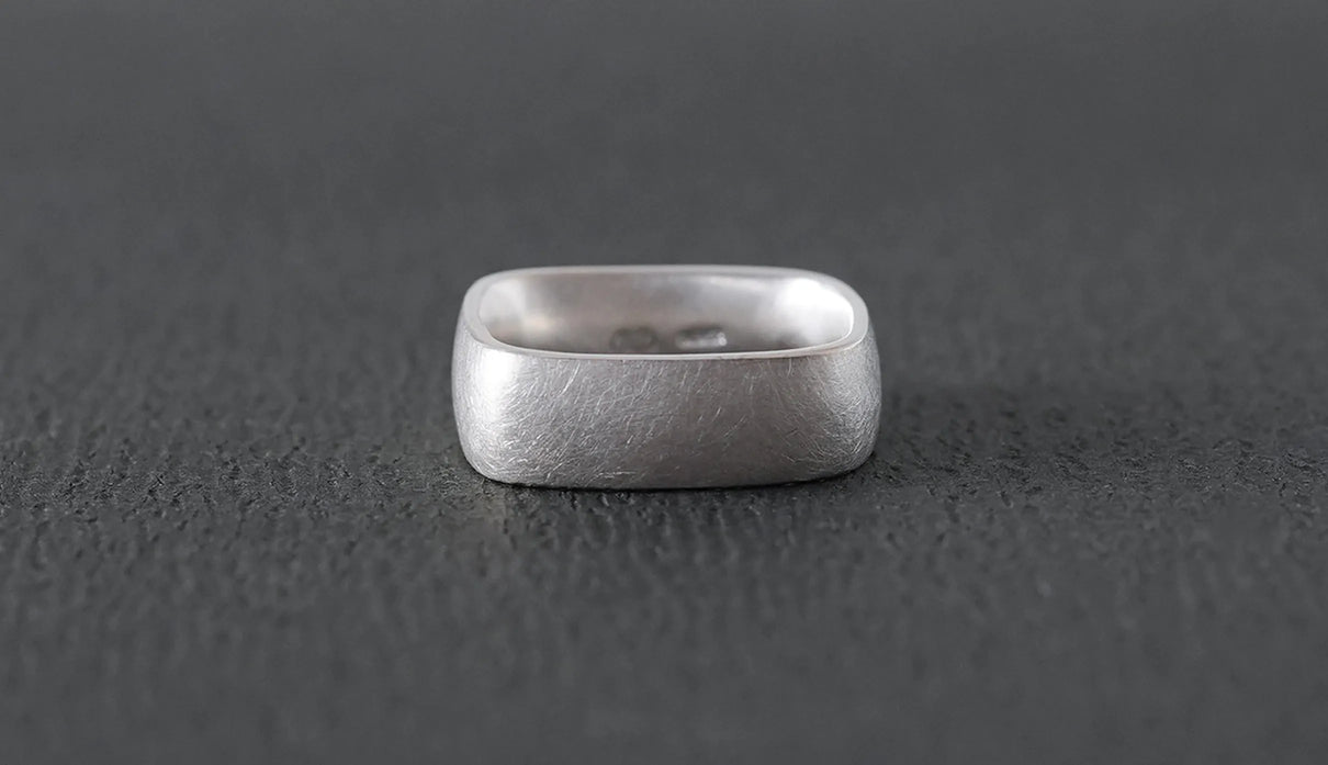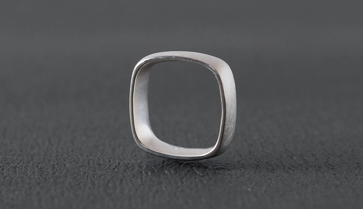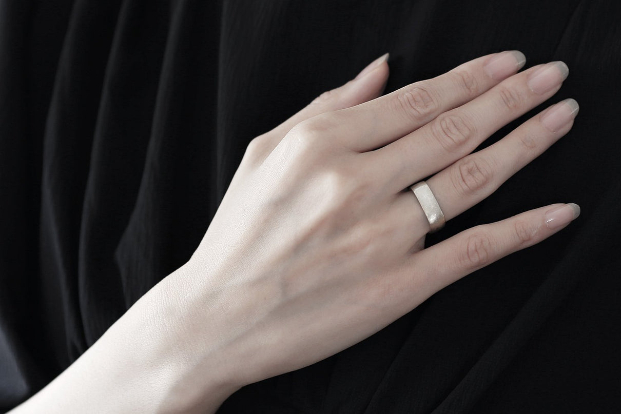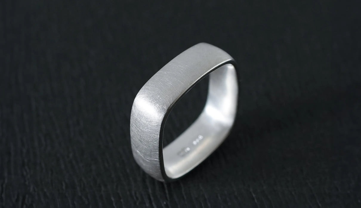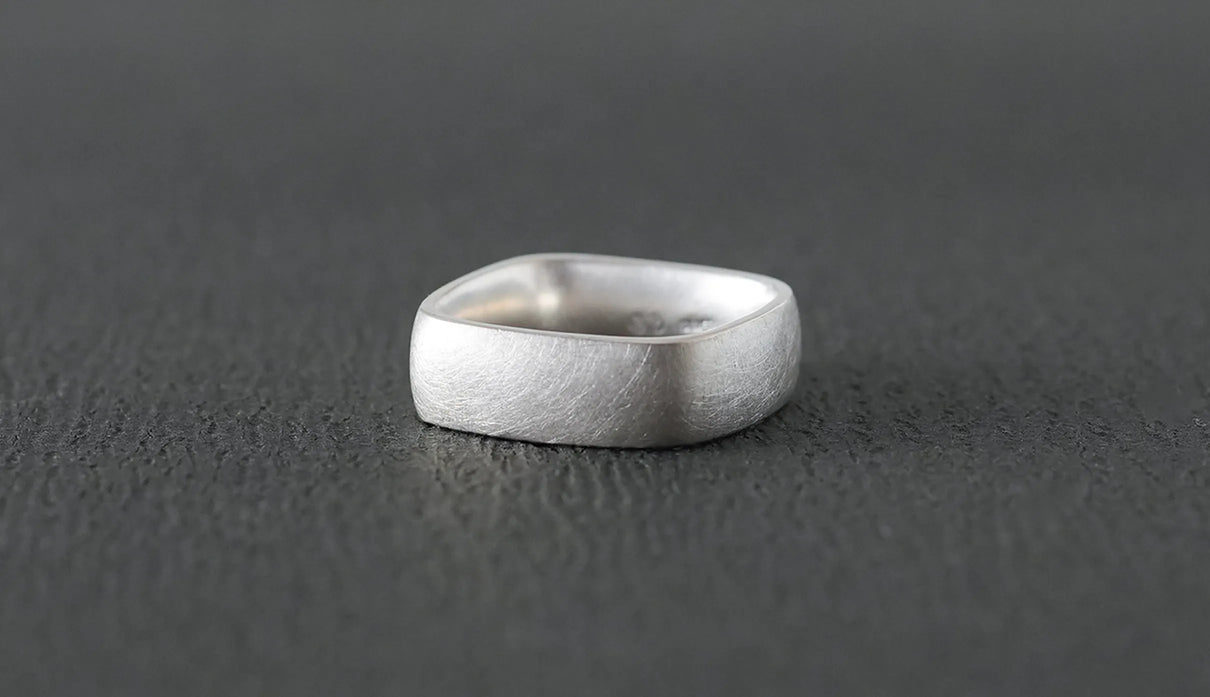 外側はプレーンなマットで落ち着いた印象に内側は指あたりよく僅かな膨らみを持たせ四角形の指のフィット感とともに毎日身に着けるのが楽しみになるとっても着け心地のよいリングです。号数は約9号 , 約12号 , 15号 , 19号 , 21号 , 23号の6展開です。(四角いリングのためサイズ直し不可となります。)