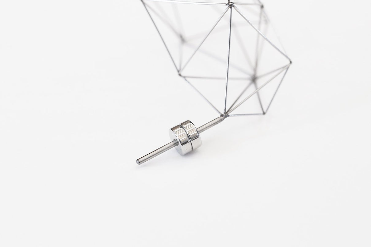 高い硬度を持ち、腐食しにくく弾性に優れたステンレス。そのしなやかな特性を活かし毛のように細いステンレス線で極限まで繊細さを追求。貴金属では不可能だったデザインを実現しました。