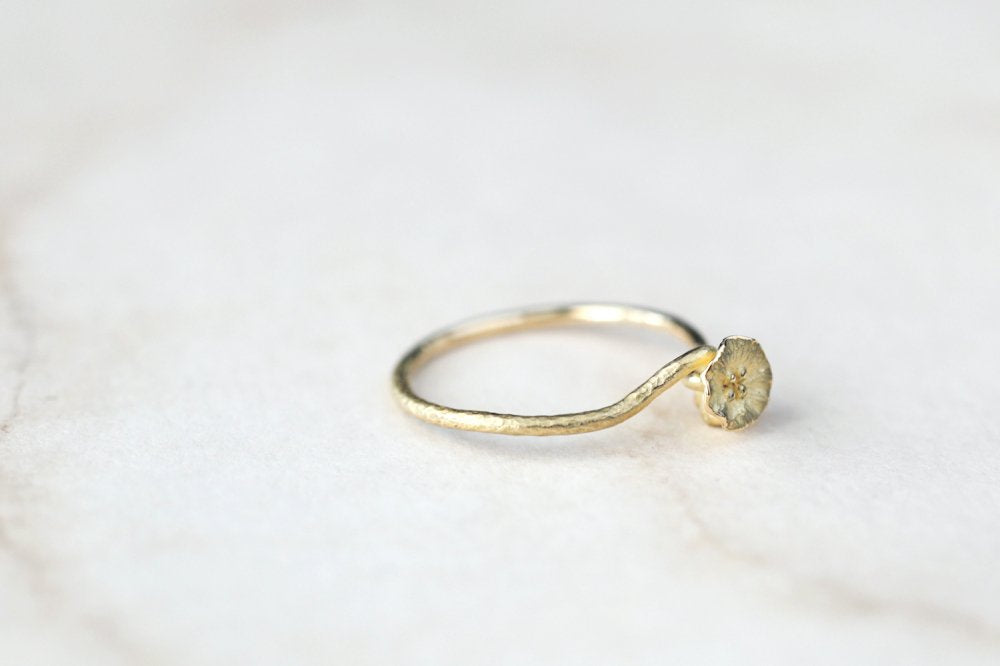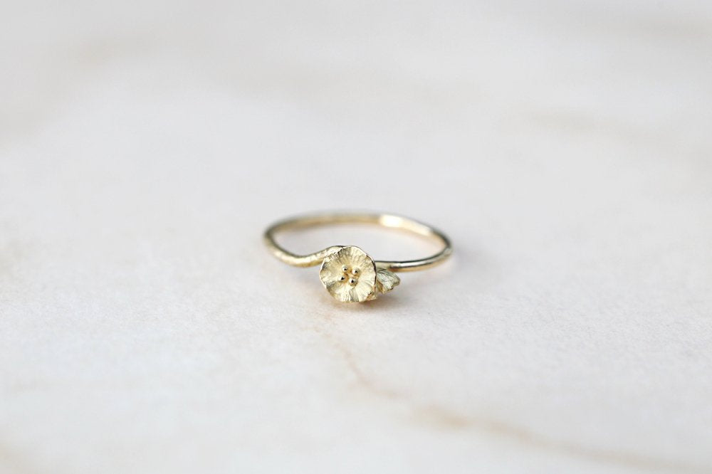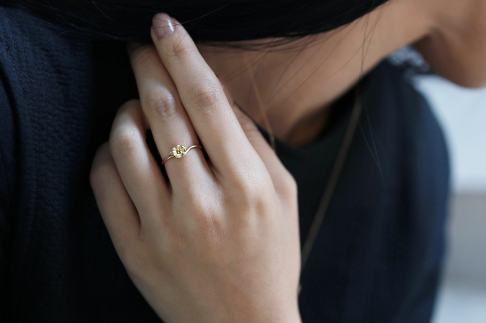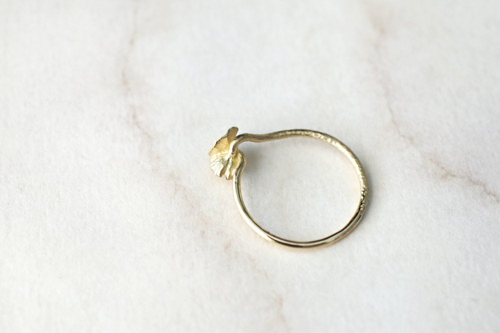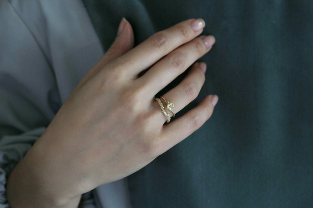 花が咲き、朽ち、種を落として、また花が咲く。延々と繰り返しながらめぐりめぐる、自然の営みをモチーフにした"me&me"シリーズのリング。咲いたばかりの活き活きとした花と、次へと託す種を生むために朽ちていく2つの花のコントラストを繊細な作りで表現しています。