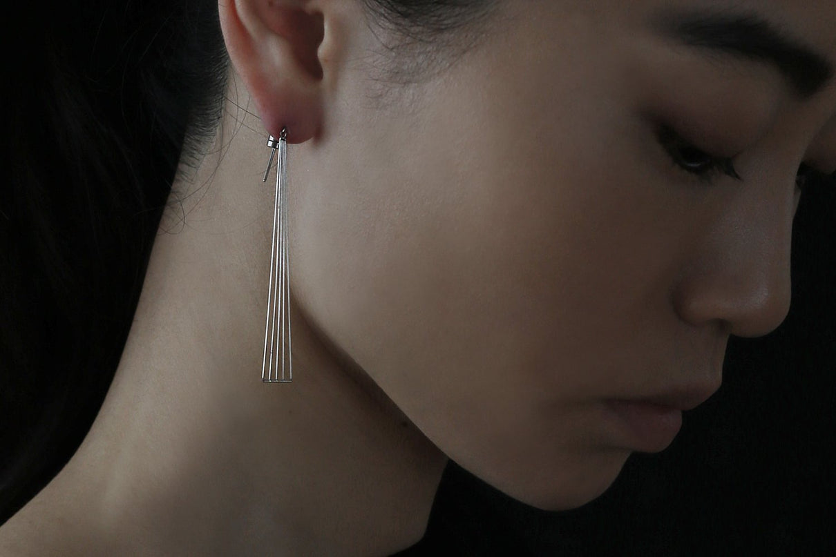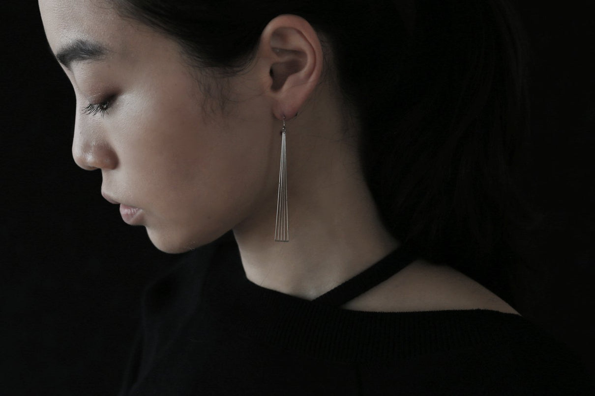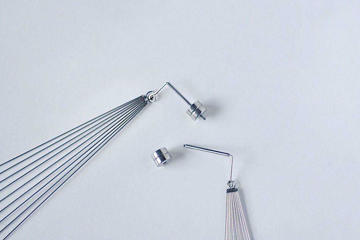 高い硬度を持ち、腐食しにくく弾性に優れたステンレス。そのしなやかな特性を活かし毛のように細いステンレス線で極限まで繊細さを追求。貴金属では不可能だったデザインを実現しました。