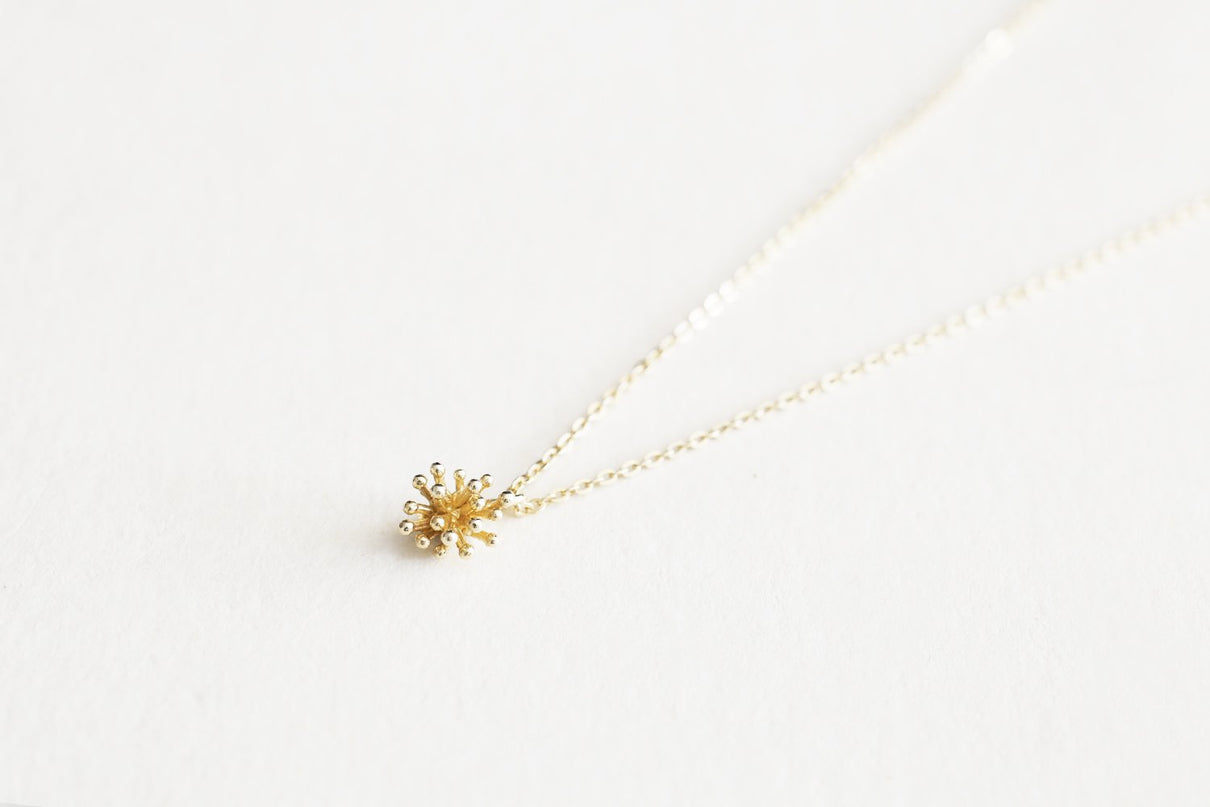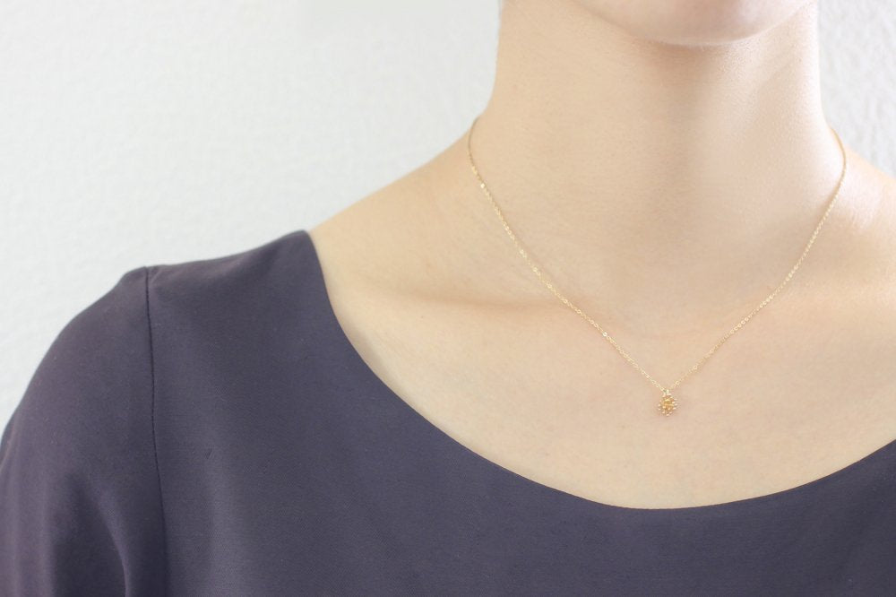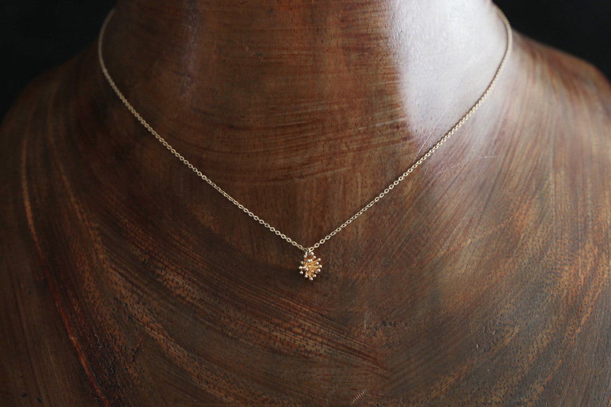 小さなつぶつぶが集まったモチーフのネックレス。細やかな手仕事による艶やかな質感が、さりげなくも存在感を放ちます。