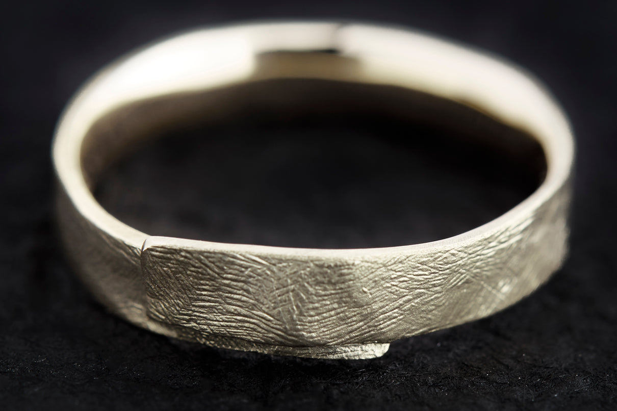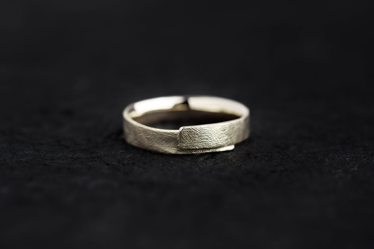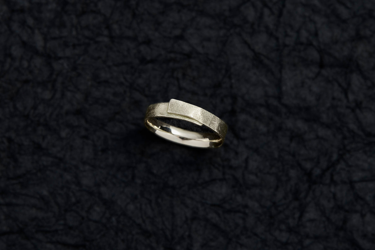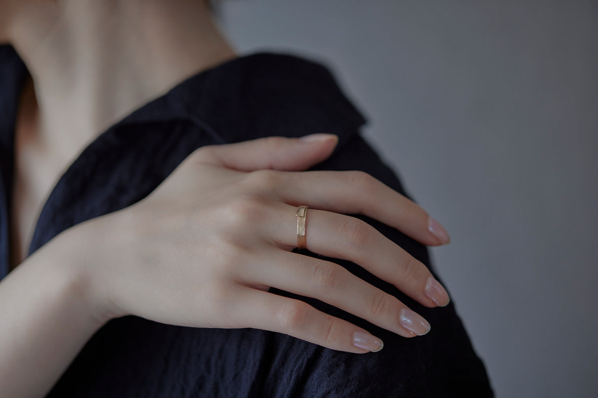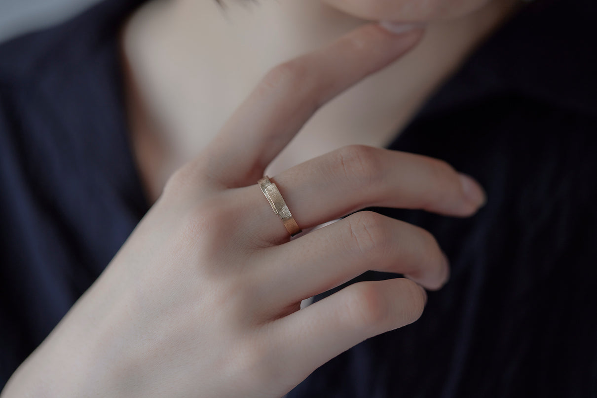 風景に当たり前のように静かに佇む"布"から着想を得た、柔らかなフォルムのリング。温かみの有るラフなテクスチャーを施した、穏やかな表情が魅力です。付け心地にこだわった内側はカーブを描いた滑らかな仕上げで、包み込まれるようなフィット感を実現。装いを選ばず、デイリーに心地良く身につけていただけるおすすめのリングです。