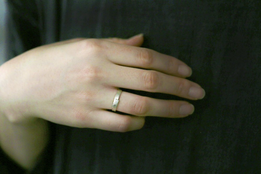 風景に当たり前のように静かに佇む"布"から着想を得た、柔らかなフォルムのリング。温かみの有るラフなテクスチャーを施した、穏やかな表情が魅力です。付け心地にこだわった内側はカーブを描いた滑らかな仕上げで、包み込まれるようなフィット感を実現。装いを選ばず、デイリーに心地良く身につけていただけるおすすめのリングです。