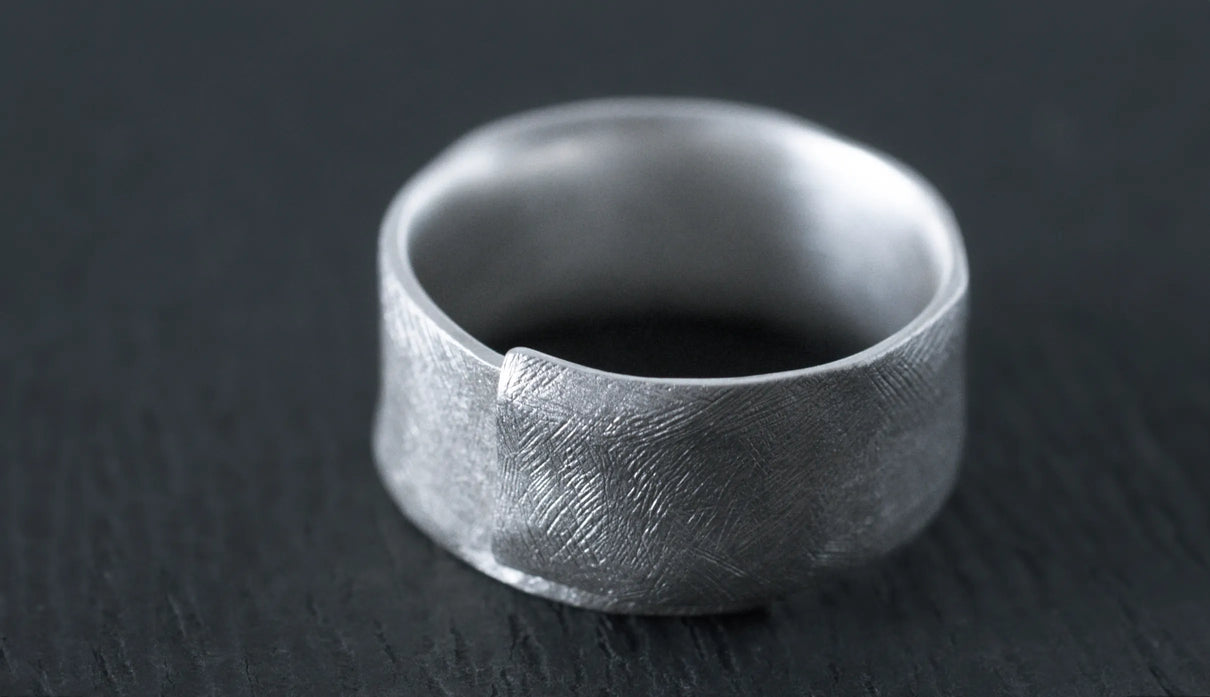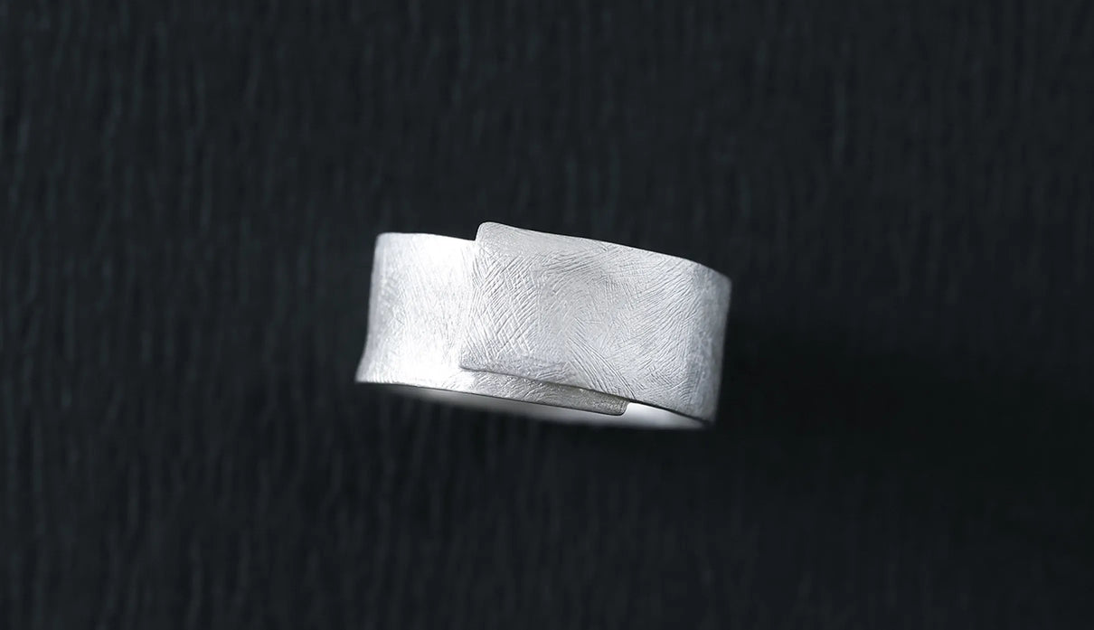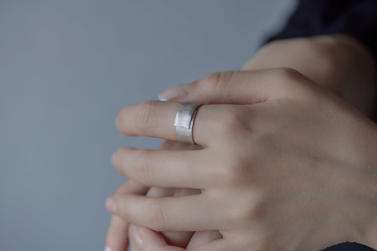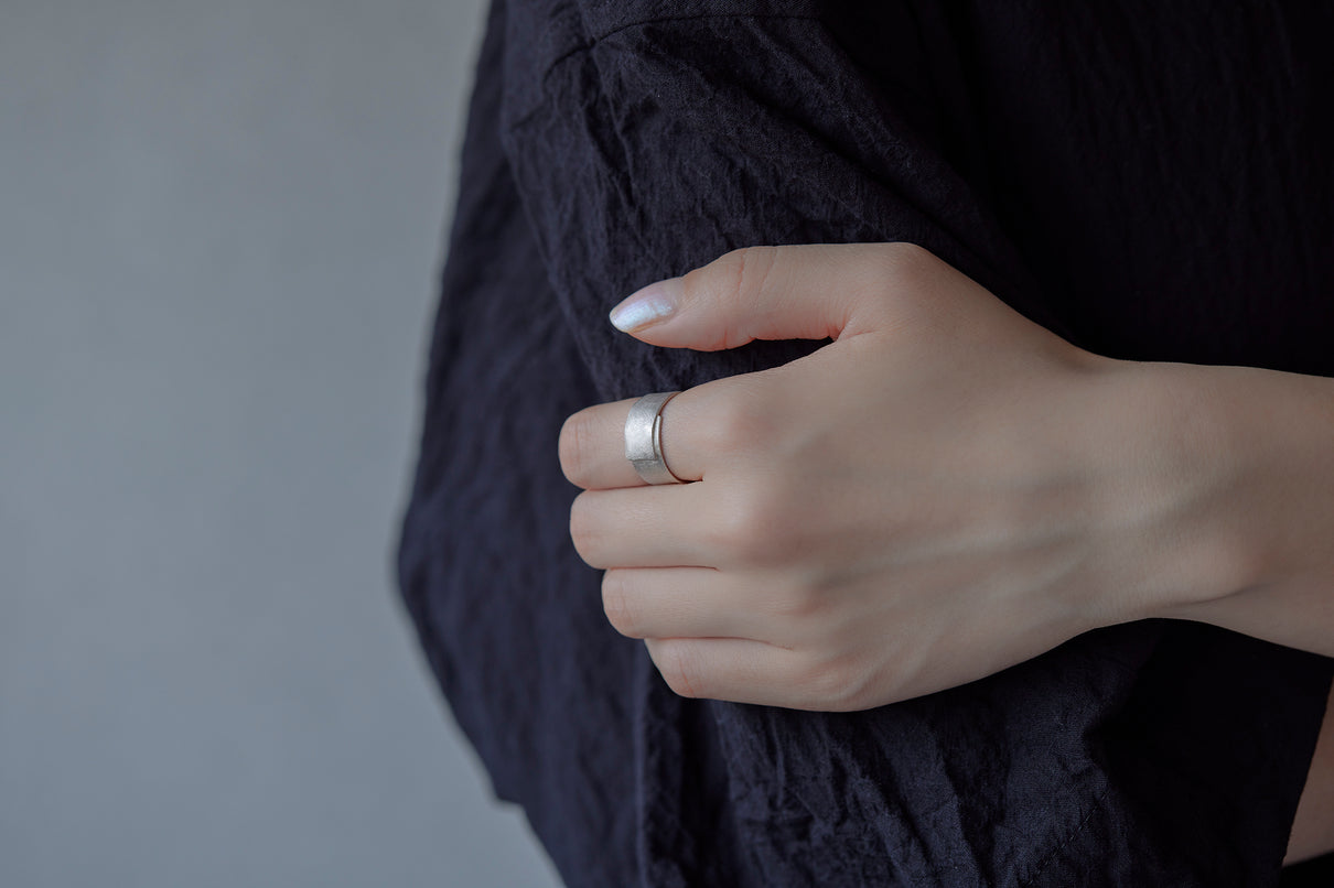 風景に当たり前のように静かに佇む"布"から着想を得た、柔らかなフォルムのリング。温かみの有るラフなテクスチャーを施した、穏やかな表情が魅力です。付け心地にこだわった内側はカーブを描いた滑らかな仕上げで、包み込まれるようなフィット感を実現。装いを選ばず、デイリーに心地良く身につけていただけるおすすめのリングです。