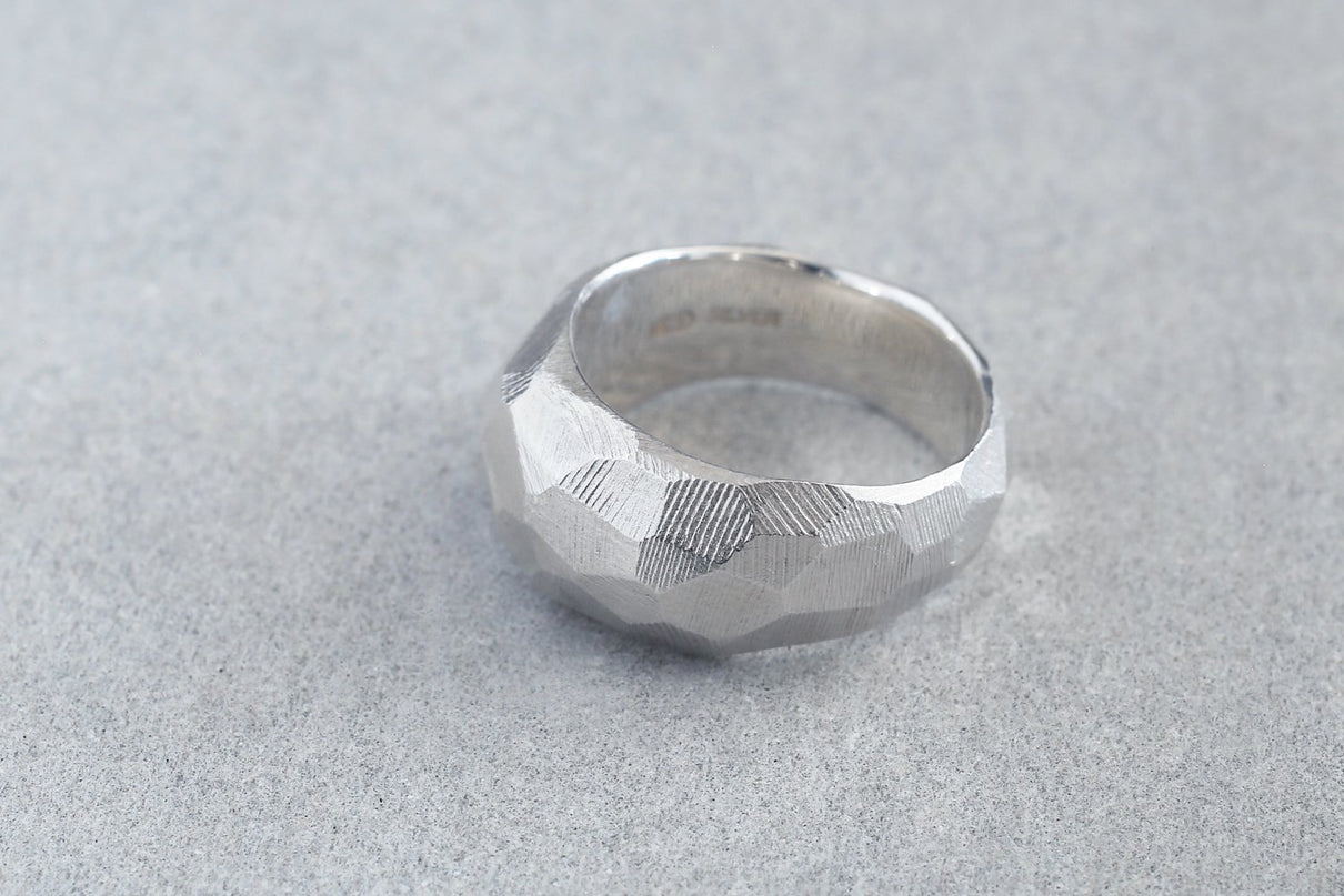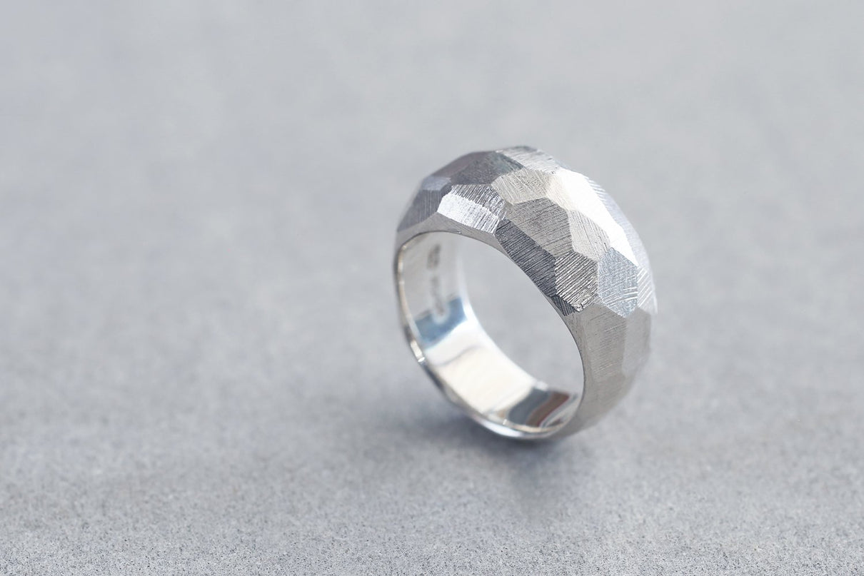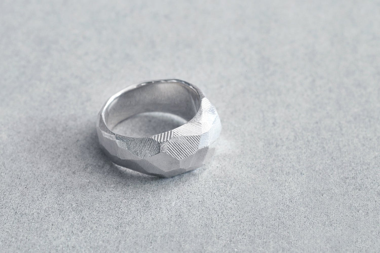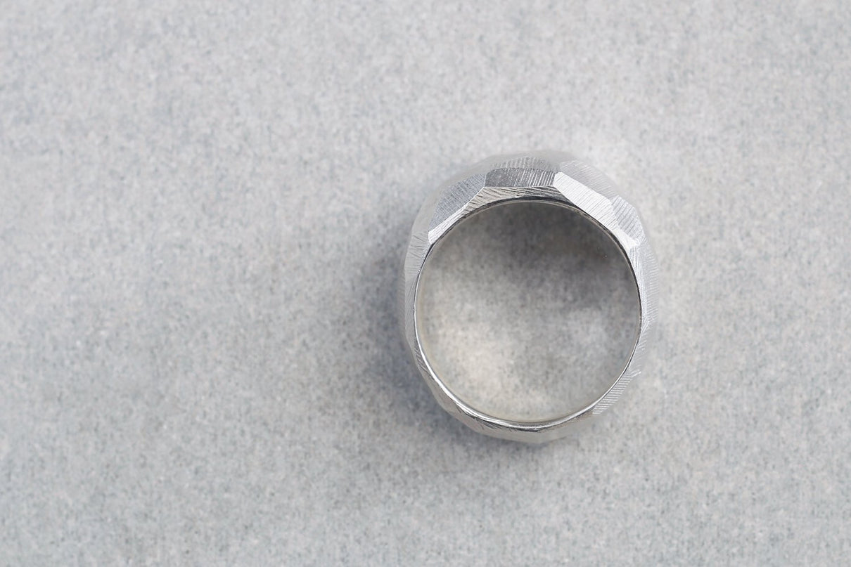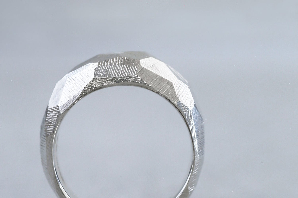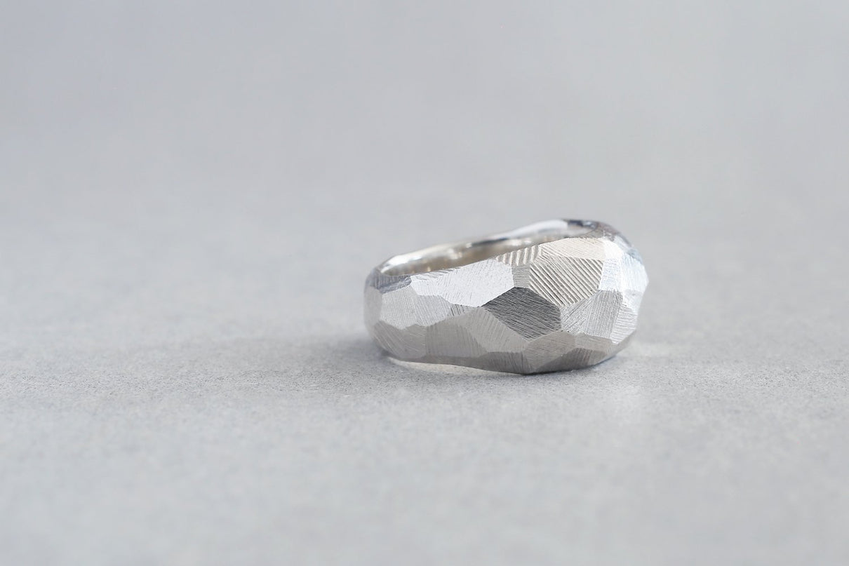 ※デザインの特性上、表面の質感を生かすため本商品はシルバーにコーティングを施していません。コーティングを施していないシルバーは空気中の硫黄成分と反応することで変色する性質を持っております。シルバー専用の変色洗浄液にてご自宅でお手入れしていただきながら、お使いいただくことをおすすめしております。