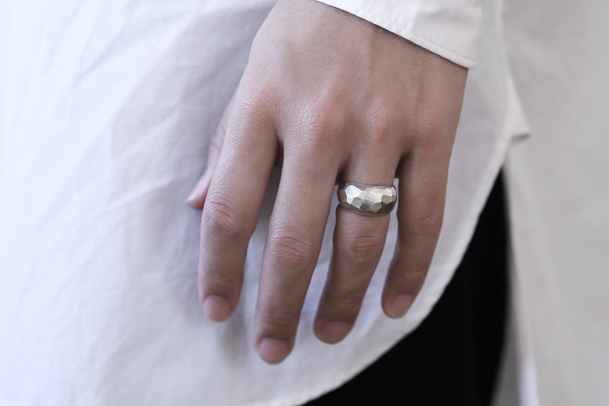 Ryuiのユニセックスコレクション。自然やモノの中に潜む美しい模様や形をそっとすくい上げるように新たな命を宿す。手仕事で丁寧に作られた綿密な表情によってさりげなさの中に確かな存在感を放ちます。