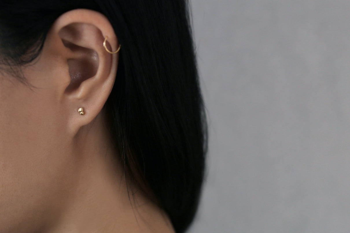 森の奥にひそむ、小さきもの達の静かなる営みをモチーフにした"Whisper"。よく見るとそのひとつひとつは個性のある形をしていて、目を凝らして初めてそれに気づき、その砂つぶのような存在に愛しさを感じるようなそのさりげない存在感はデイリーや重ね付けにもおすすめのスタッドタイプのピアスです。