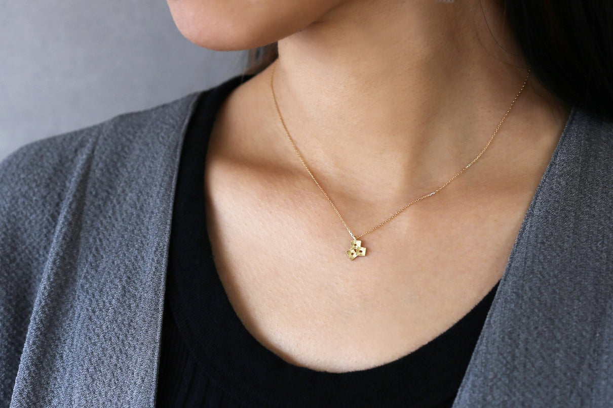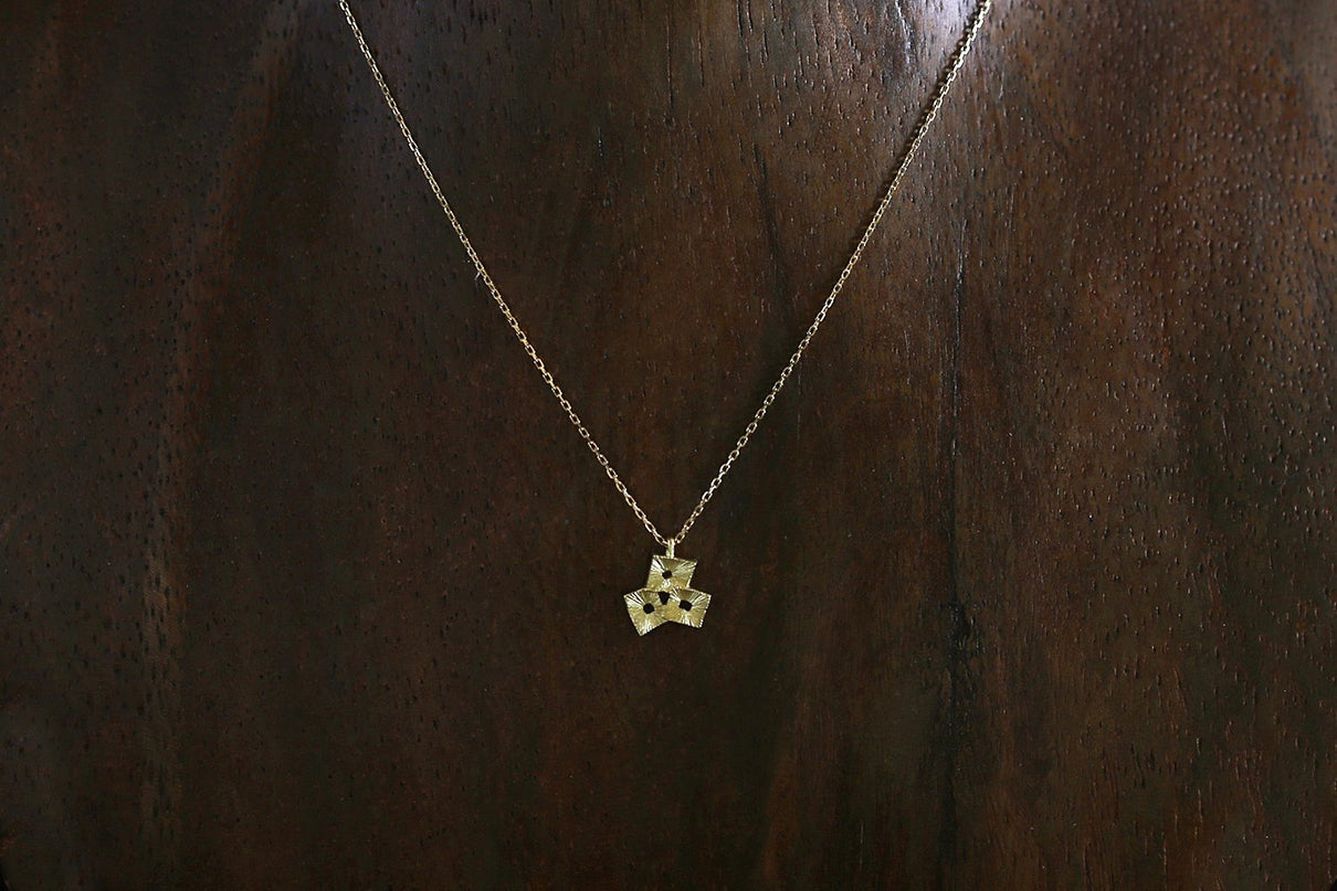 澄んで輝く結晶が、少しずつつくられてゆく様子をイメージしたAkirakaシリーズのネックレス。ひしめき合うように咲き開いていくような結晶のランダムなスクエアのひとつひとつには繊細に手彫りされたテクスチャーが入っており、すっきりとしたフォルムながらも、複雑な表情と有機的な動きを感じさせるアイテムです。
