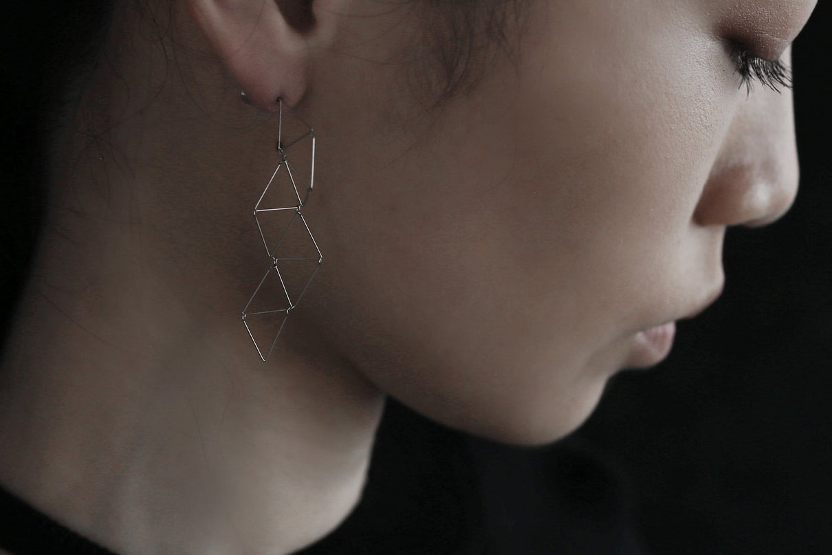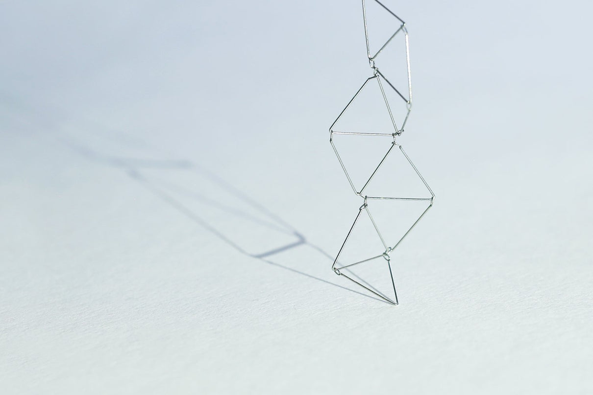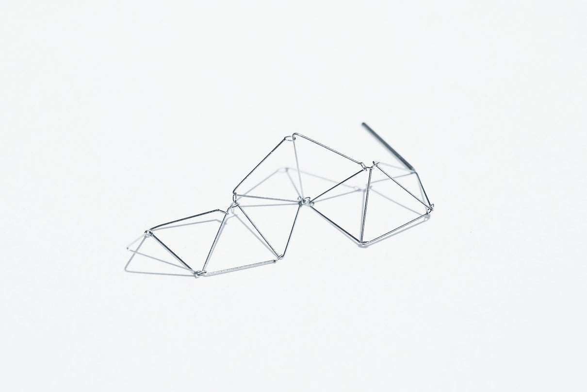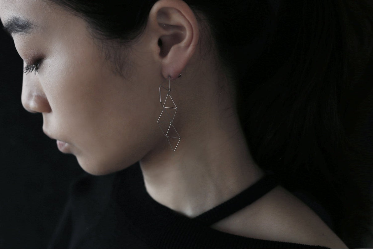 腐食しにくく弾性に優れたステンレスを使った、毛のように細い繊細なデザインのKenonシリーズ。モビールのように軽やかで、予測不可能な動きを見せるピアスは、長さが異なる2種類で展開。No.10は9つのスクエアがランダムに連なる長い方のデザインです。片耳ずつの販売なので、短めのNo.9と合わせて左右アシンメトリーにつけて楽しむこともできます。