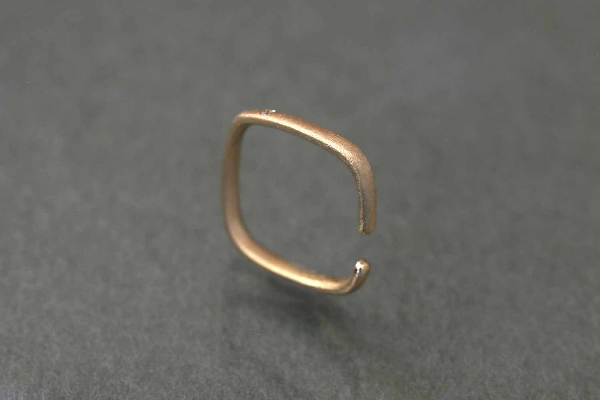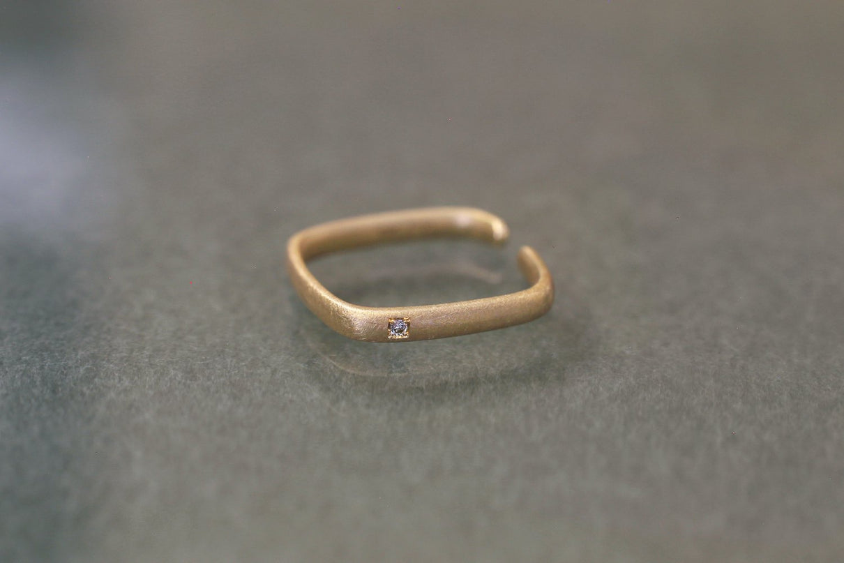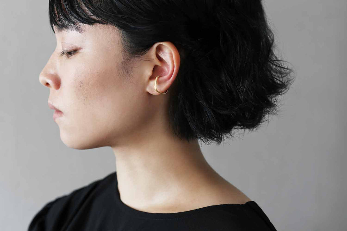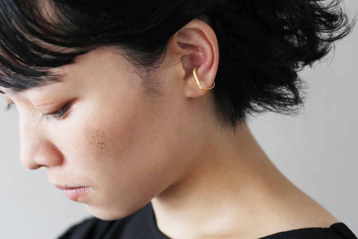三味線の形から着想を得て作られたSyamiシリーズ。古来より伝わる伝統楽器に潜む美しいフォルムを、イヤーカフ として再現しました。ブラウンダイヤが上品に輝くつや消しゴールドのイヤーカフは、緩やかなカーブを描く柔らかなスクエア型。服装を選ばず、日常使いしやすいアイテムです。