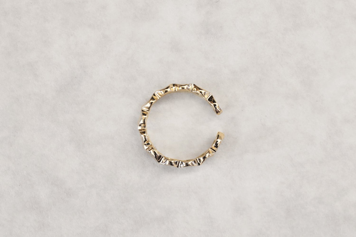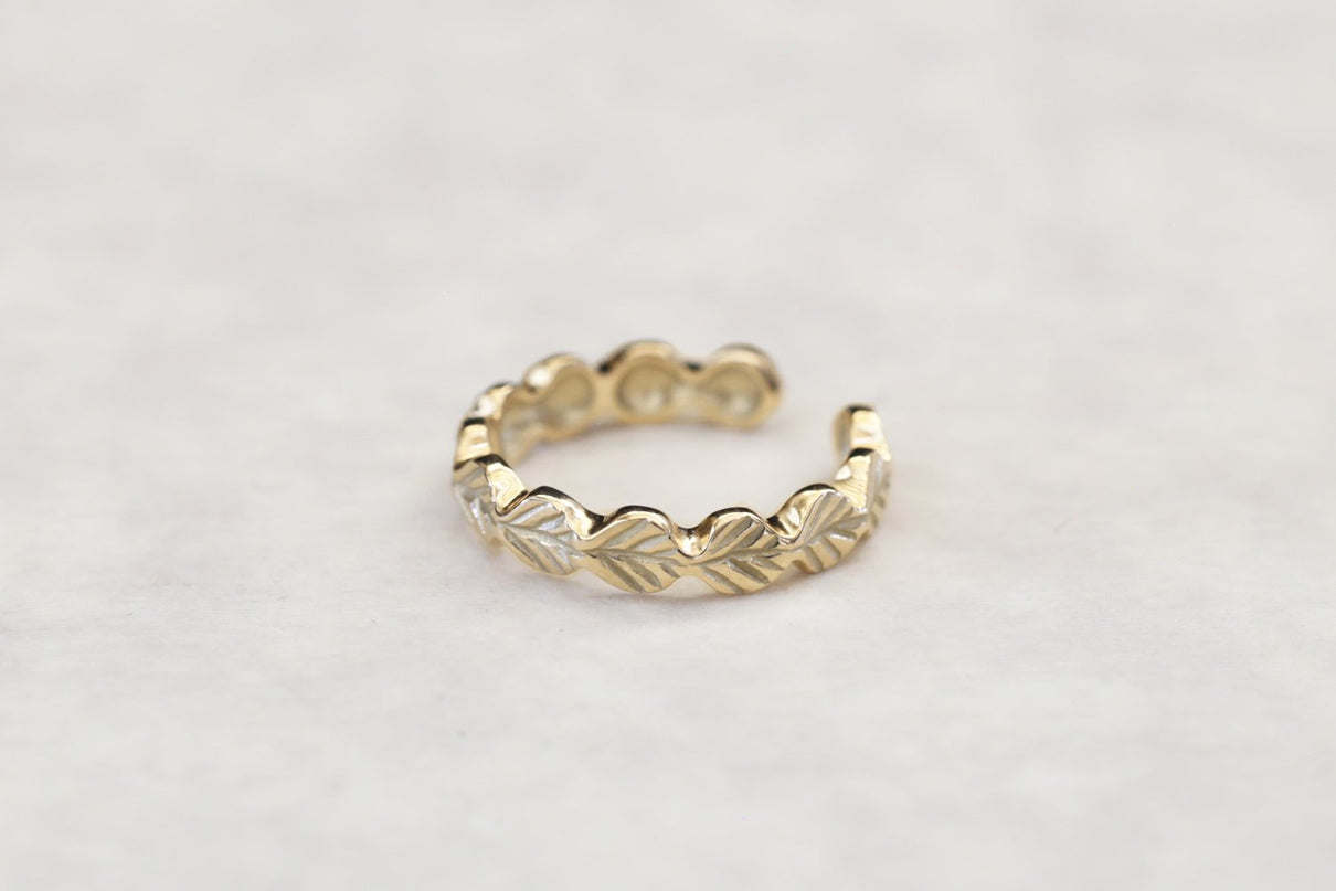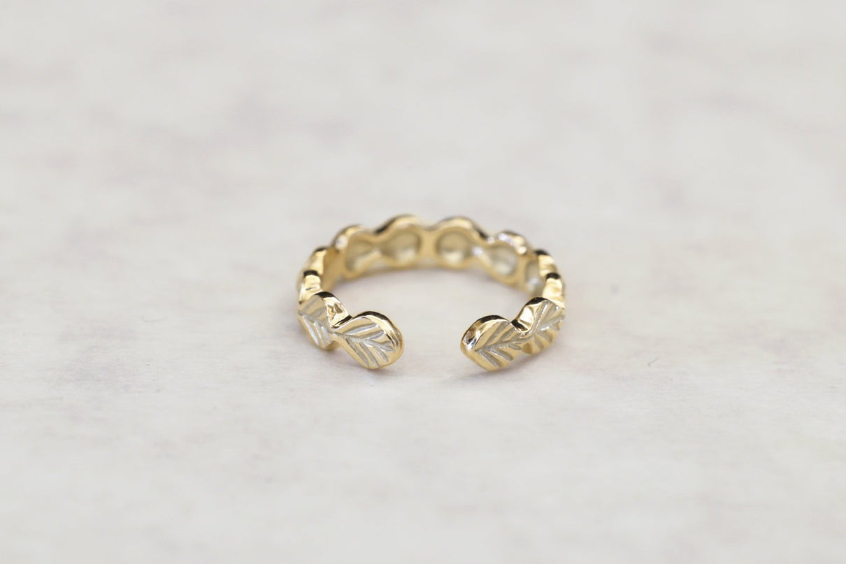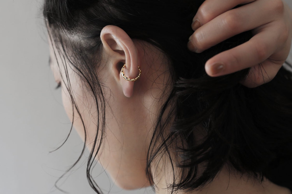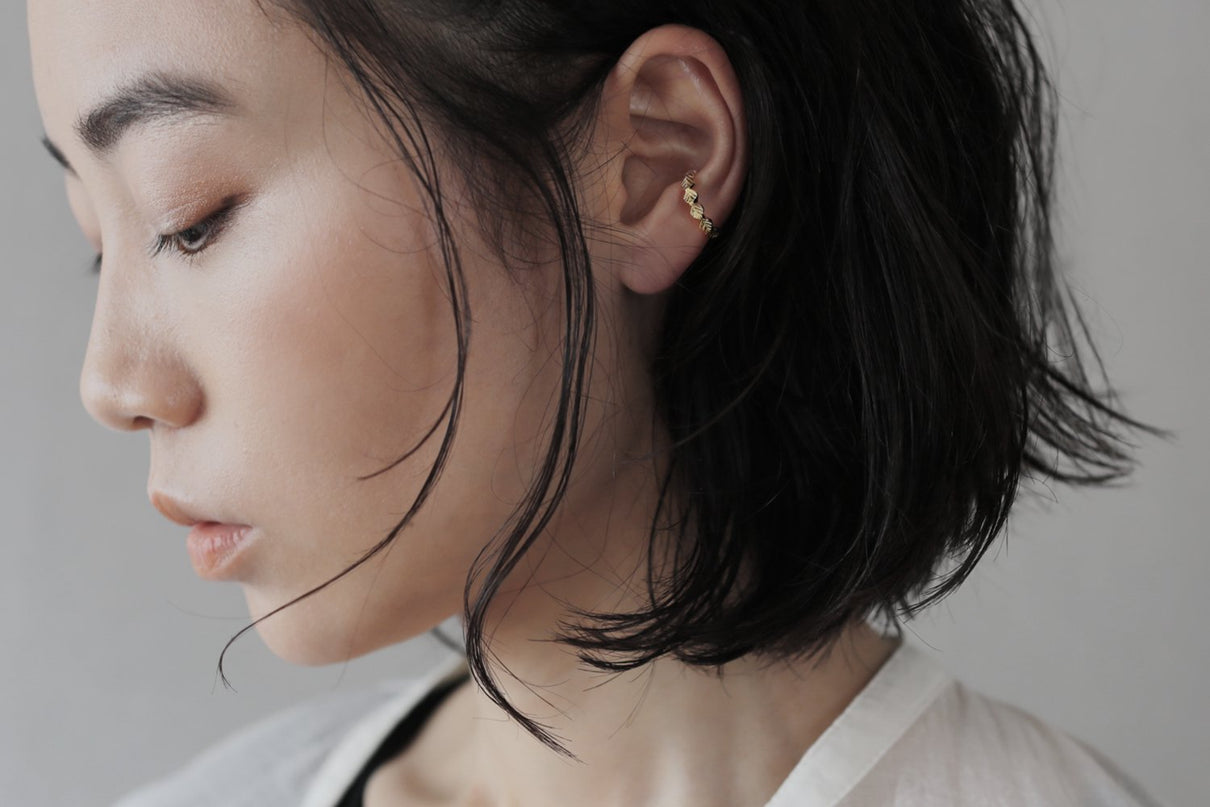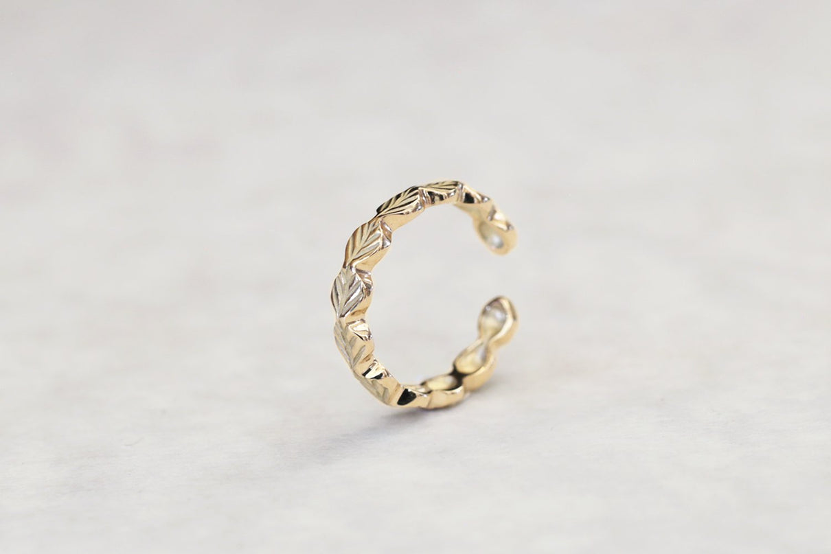 いくつも連なる葉っぱをモチーフに、1枚1枚わずかに異なる表情に遊び心を込めた"Leaf"シリーズのイヤーカフ。光を仰ぐ瑞々しい新緑の若葉のように艶めくやわらかな緩急の葉のフォルムが、さりげなくも愛らしく華やかに耳元を飾ります。