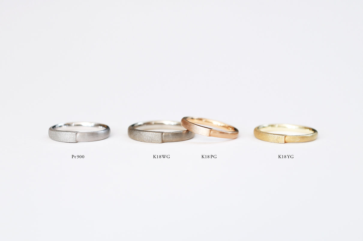 リングの素材はPt900(プラチナ) 、 K18YG(イエローゴールド) 、K18WG(ホワイトゴールド)、K18PG(ピンクゴールド)よりお選びいただけます。
