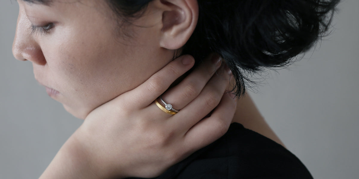 ※マリッジリングとエンゲージリングをRyuiであわせてオーダーいただいた方へ、祝福の気持ちを込めたささやかなギフトとして、幸運を運ぶとされる鳥をモチーフにした「渡り鳥のピンブローチ」をプレゼントいたします(写真7枚目/真鍮製)。