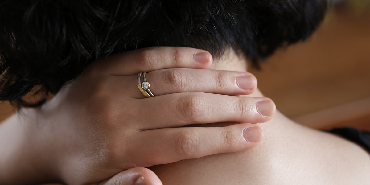 ※マリッジリングとエンゲージリングをRyuiであわせてオーダーいただいた方へ、祝福の気持ちを込めたささやかなギフトとして、幸運を運ぶとされる鳥をモチーフにした「渡り鳥のピンブローチ」をプレゼントいたします(写真8枚目/真鍮製)。