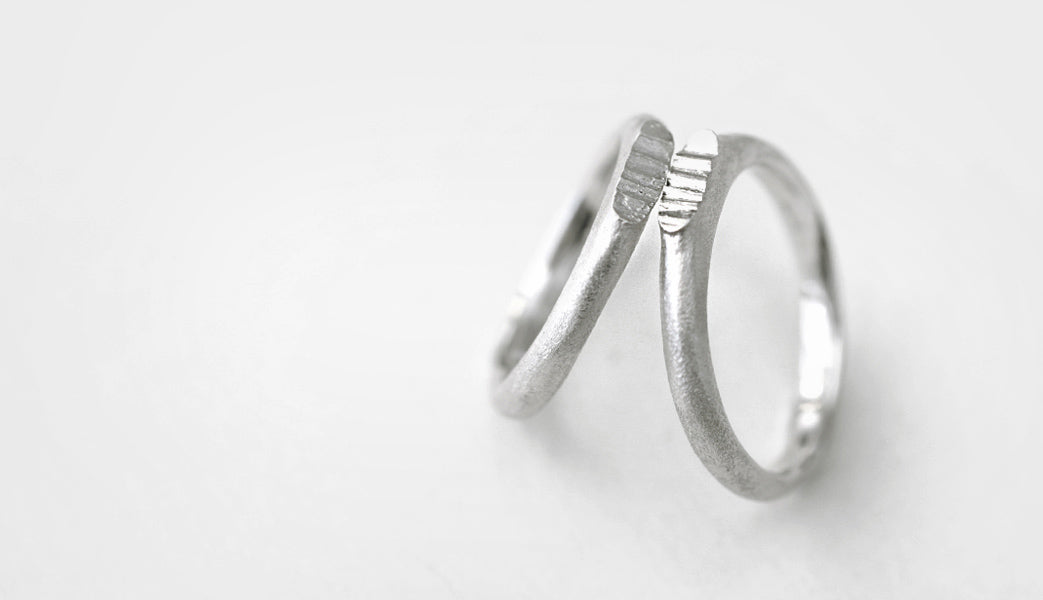 Twosome ( トゥーサム )"一つを二人で分かち合う"というコンセプトから生まれたマリッジリング ( 結婚指輪 ) 。鍵のようにぴたりと合う二本の形は、この世にたった一つの組み合わせです。互いの喜びも悲しみも分かち、力を合わせて。共に歩んでゆくお二人の幸せな時をこっそりと象徴するように、さりげない個性が手元で穏やかに光ります。
