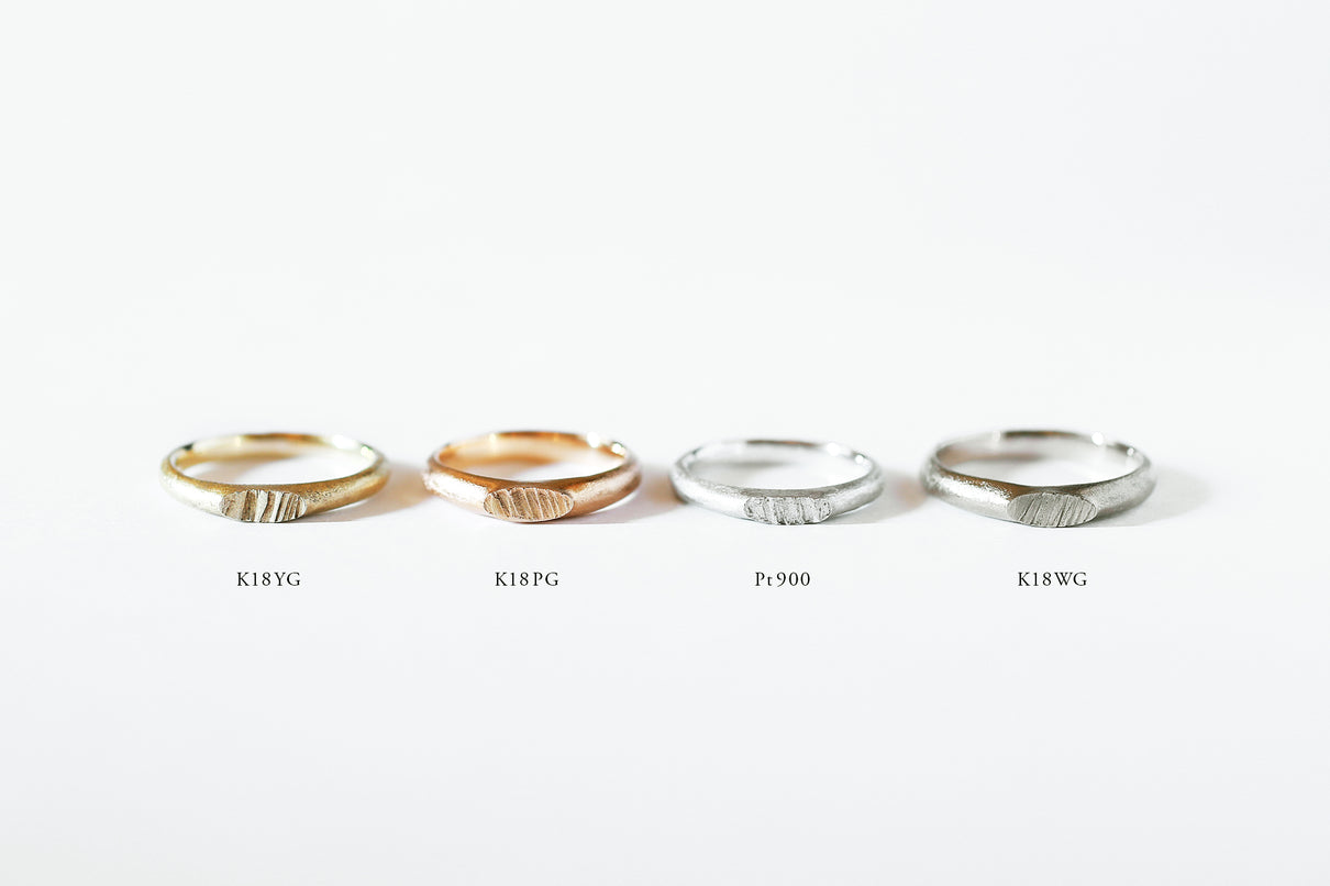 リングの素材はPt900(プラチナ) 、 K18YG(イエローゴールド) 、K18WG(ホワイトゴールド)、K18PG(ピンクゴールド)よりお選びいただけます。