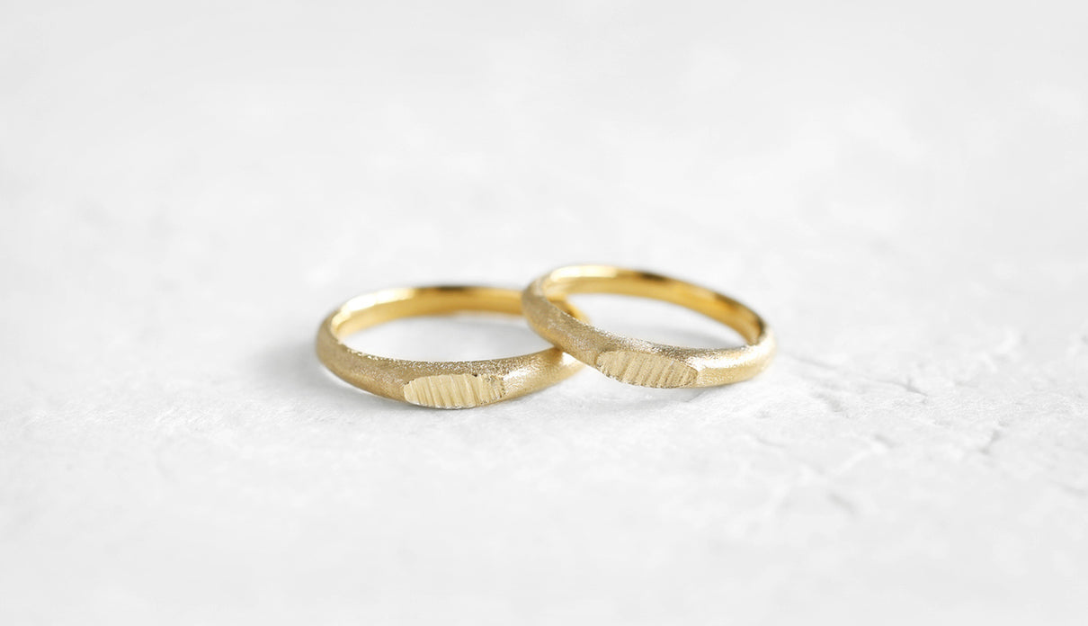 ※マリッジリングとエンゲージリングをRyuiであわせてオーダーいただいた方へ、祝福の気持ちを込めたささやかなギフトとして、幸運を運ぶとされる鳥をモチーフにした「渡り鳥のピンブローチ」をプレゼントいたします(写真8枚目/真鍮製)。