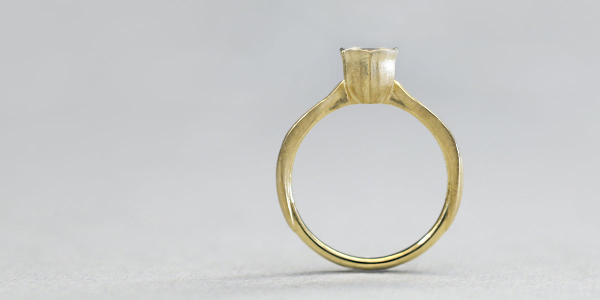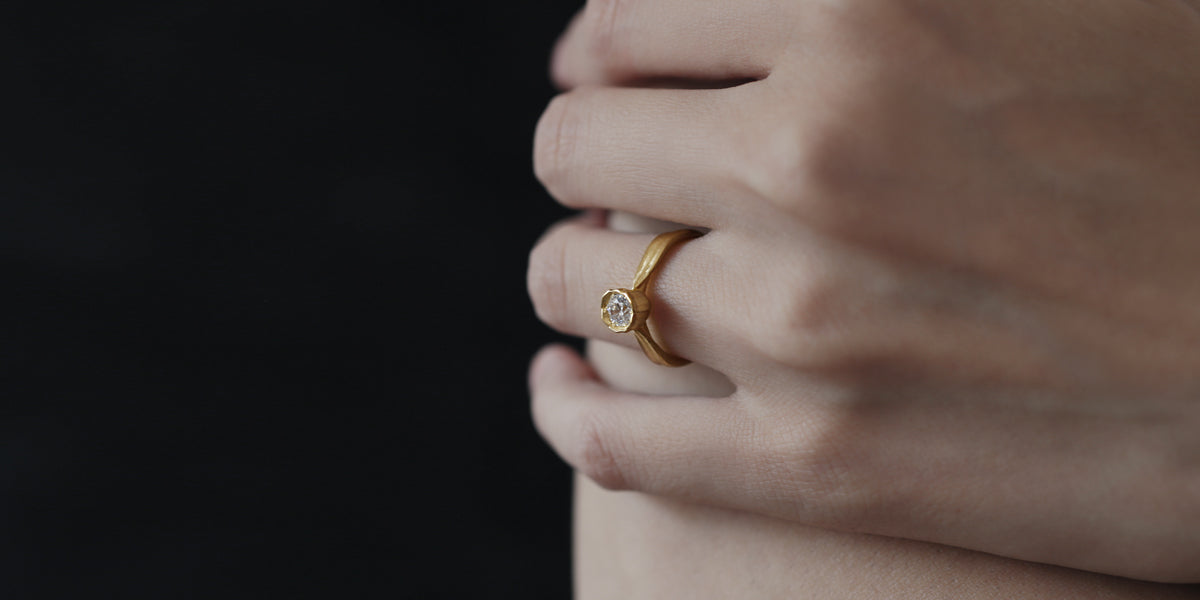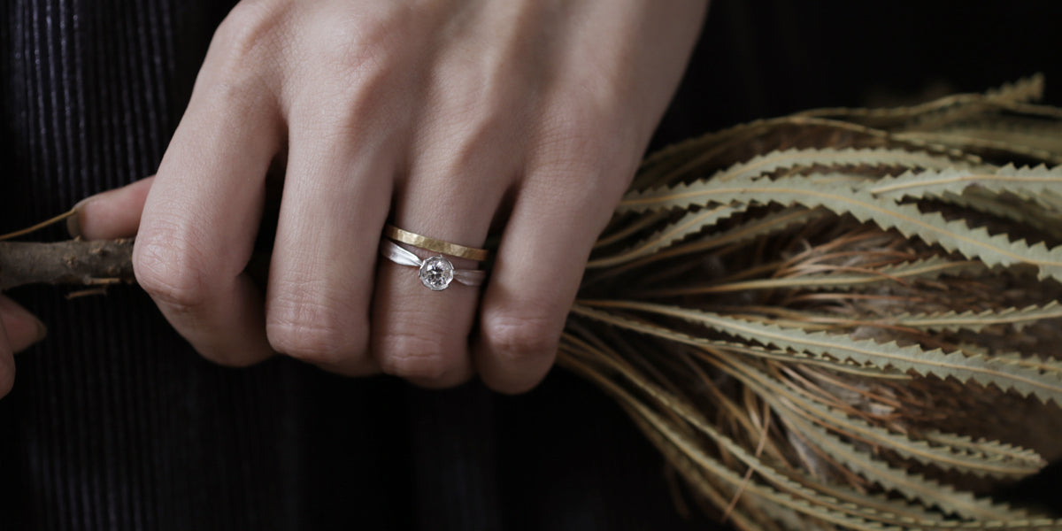 ※マリッジリングとエンゲージリングをRyuiであわせてオーダーいただいた方へ、祝福の気持ちを込めたささやかなギフトとして、幸運を運ぶとされる鳥をモチーフにした「渡り鳥のピンブローチ」をプレゼントいたします(写真10枚目/真鍮製)。