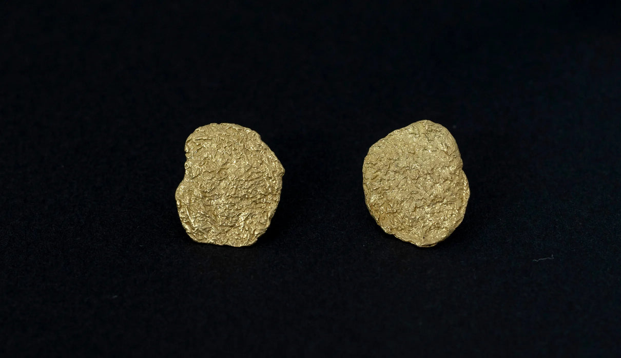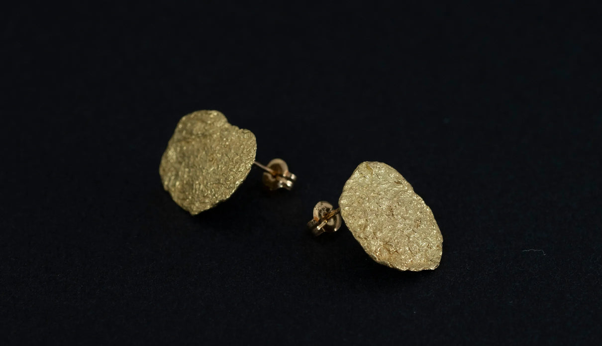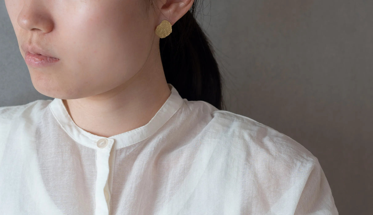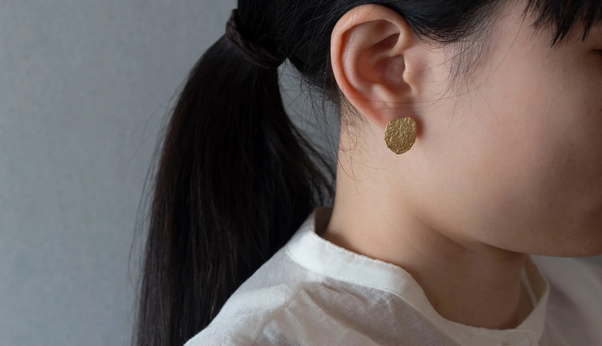 Vague things=「曖昧なこと」。 決まった言葉にできないような、何とも言い難い曖昧な感情を表現したコレクションです。左右非対称な、ゆらぎのある輪郭を与えたモチーフ全体に細かな凹凸を施し、ピアスの左右も異なるかたちを持つデザイン。平面的なデザインながらも、しっかりとした存在感を顔周りに与えます。