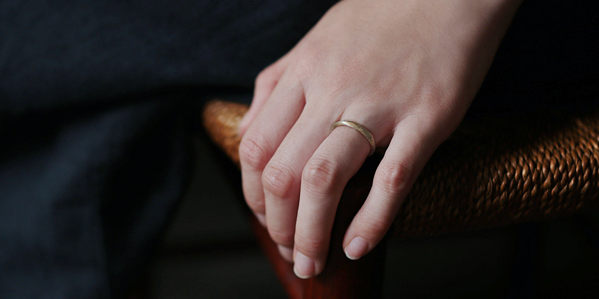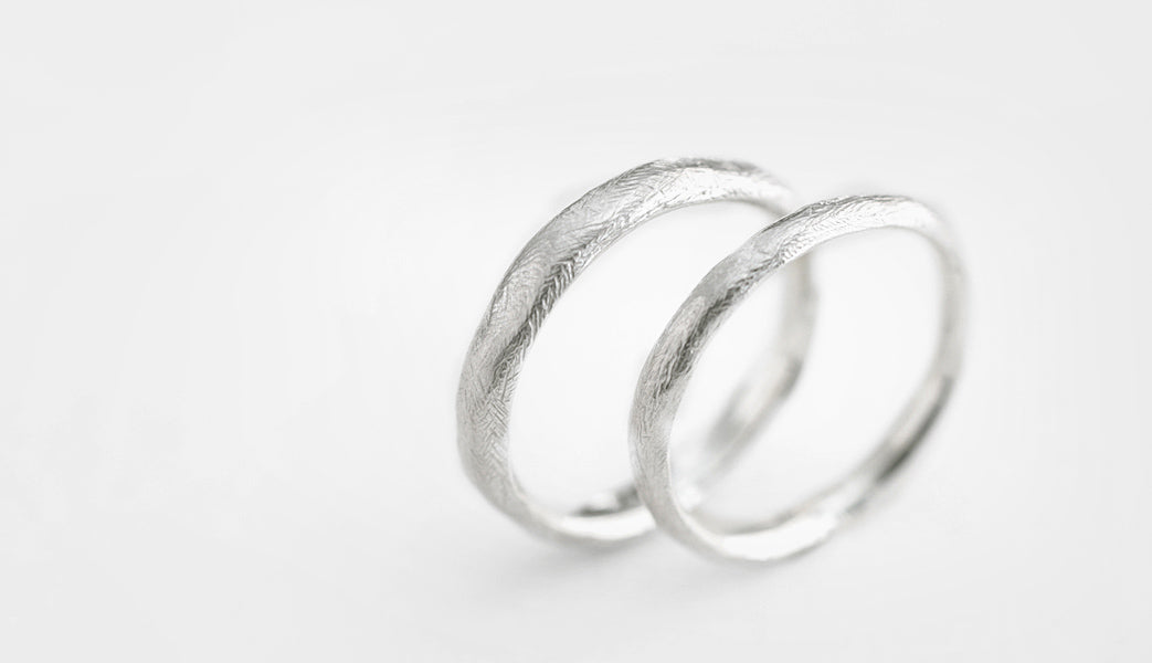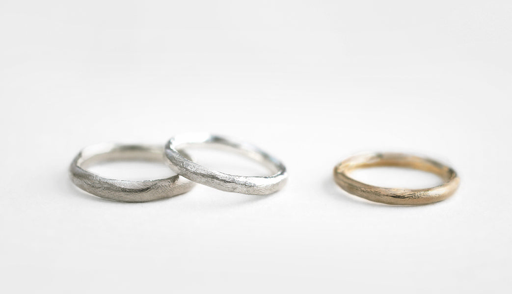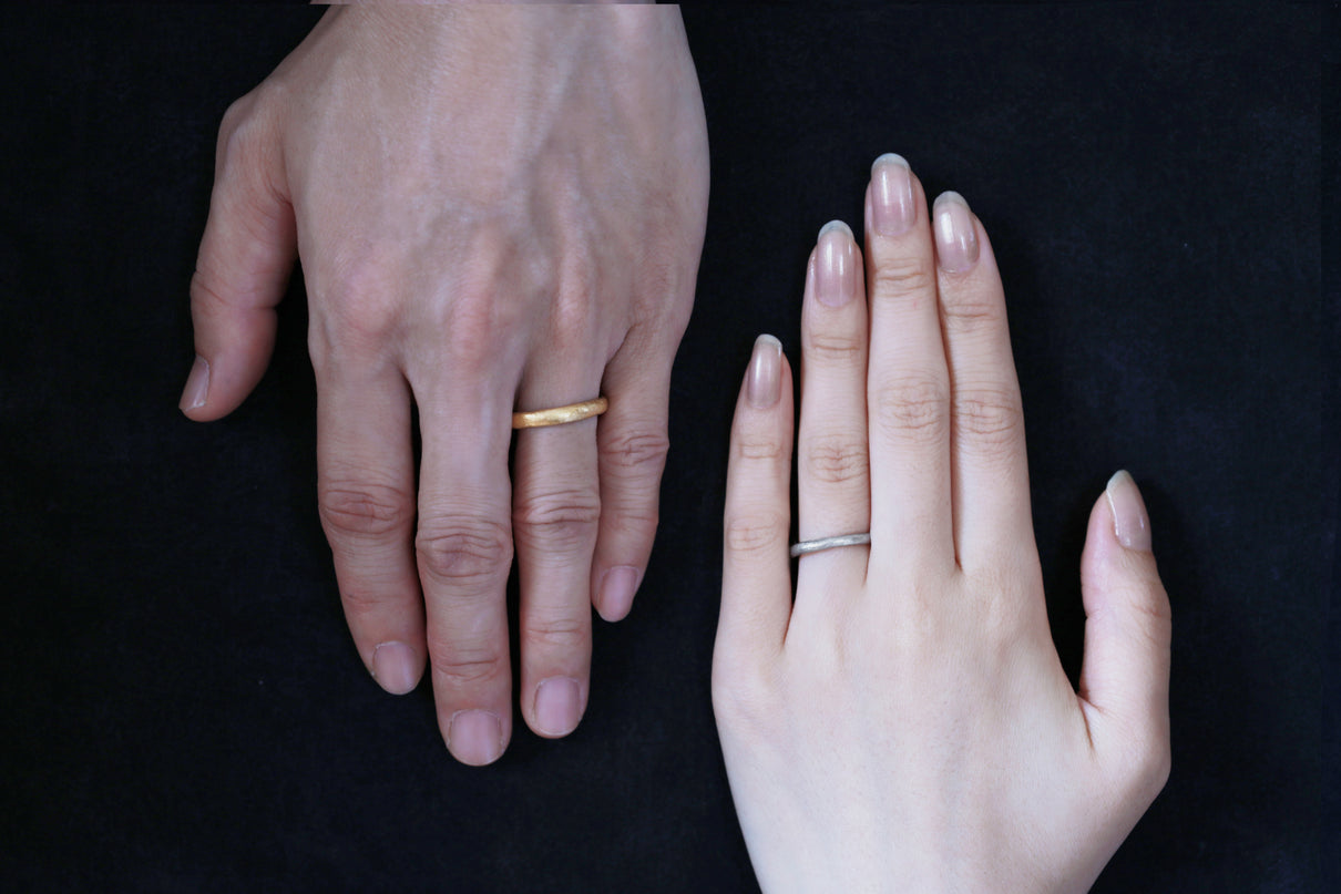 Existence ( エグジステンス ) 存在、生活、暮らしといった意味の名を持つマリッジリング ( 結婚指輪 ) 。華やかできらびやかな美しさと対をなすように存在す、 素朴で慎ましく、堅実なものの中に感じる美しさ。丸みのあるリングをベースにしたマットで緩やかな凹凸に、手仕事の風合いが生きる仕上がりです。何気ない日々の生活こそ、よろこび溢れる豊かなものとなりますように。
