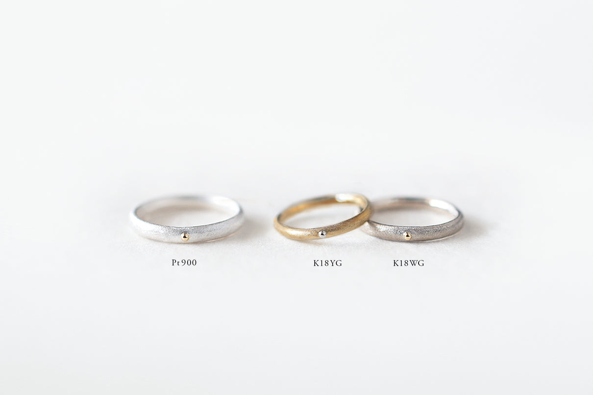 リングの素材は、ベース部分とドット部分共に、Pt900(プラチナ) 、 K18YG(イエローゴールド) 、K18WG(ホワイトゴールド)よりお選びいただけます。