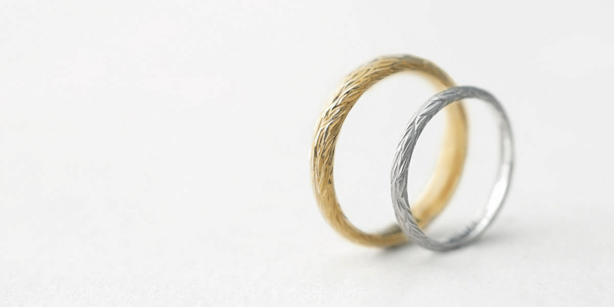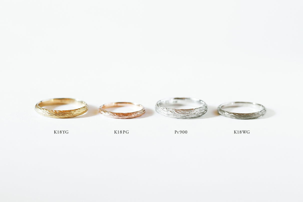 Plumage timeless ( プラマージュ タイムレス )自由で軽やかに空を飛び、たくさんの空気をまとったその羽は、暖かく柔らかく身を護る。幸運や飛躍のシンボルである"鳥"をモチーフにつくられたマリッジリング ( 結婚指輪 ) 。丸みを帯びた優しいフォルムに手彫りで表現された有機的な羽の表情は、躍動的な生命力を感じさせます。