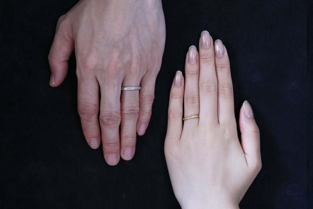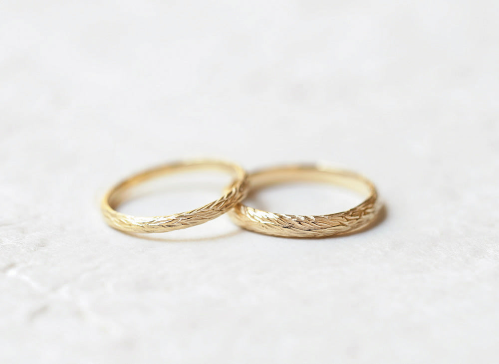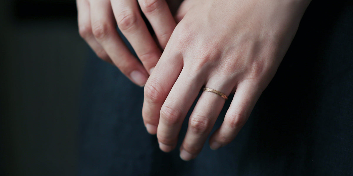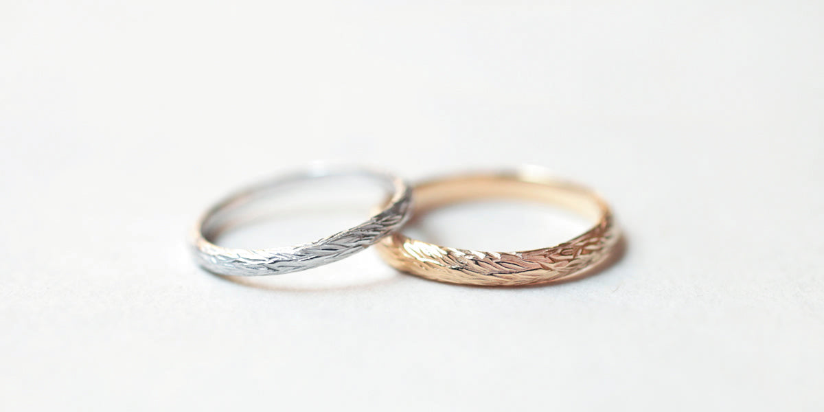 ※マリッジリングとエンゲージリングをRyuiであわせてオーダーいただいた方へ、祝福の気持ちを込めたささやかなギフトとして、幸運を運ぶとされる鳥をモチーフにした「渡り鳥のピンブローチ」をプレゼントいたします(写真8枚目/真鍮製)。