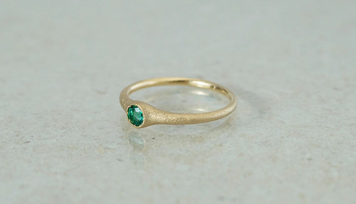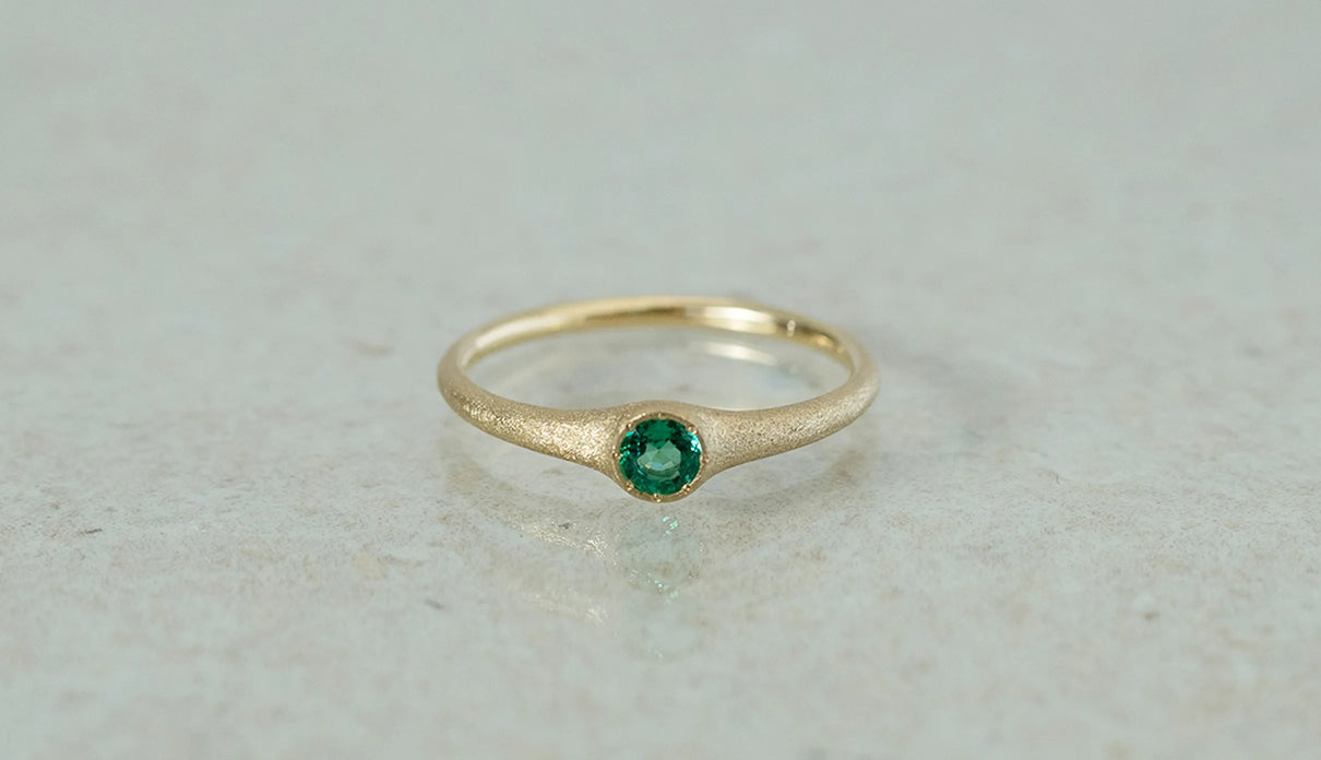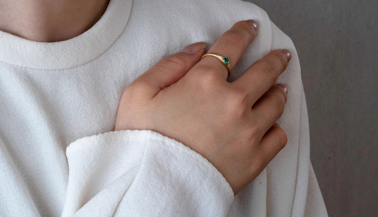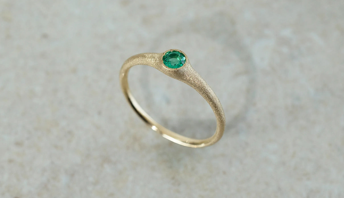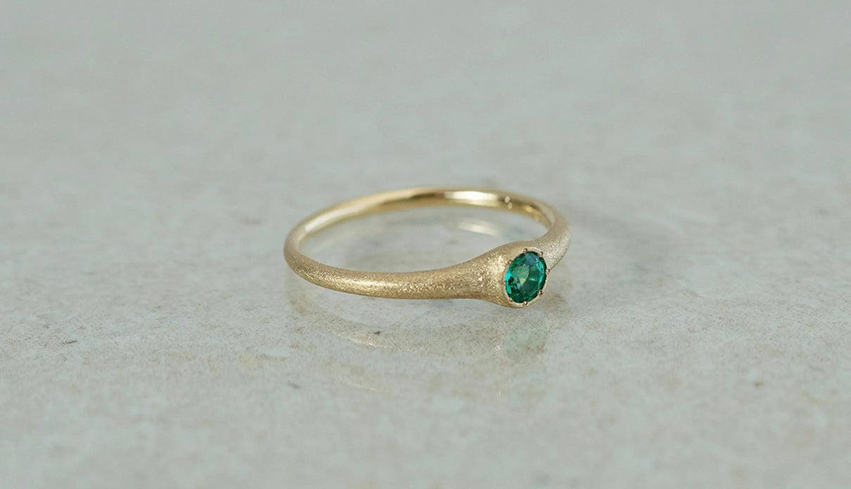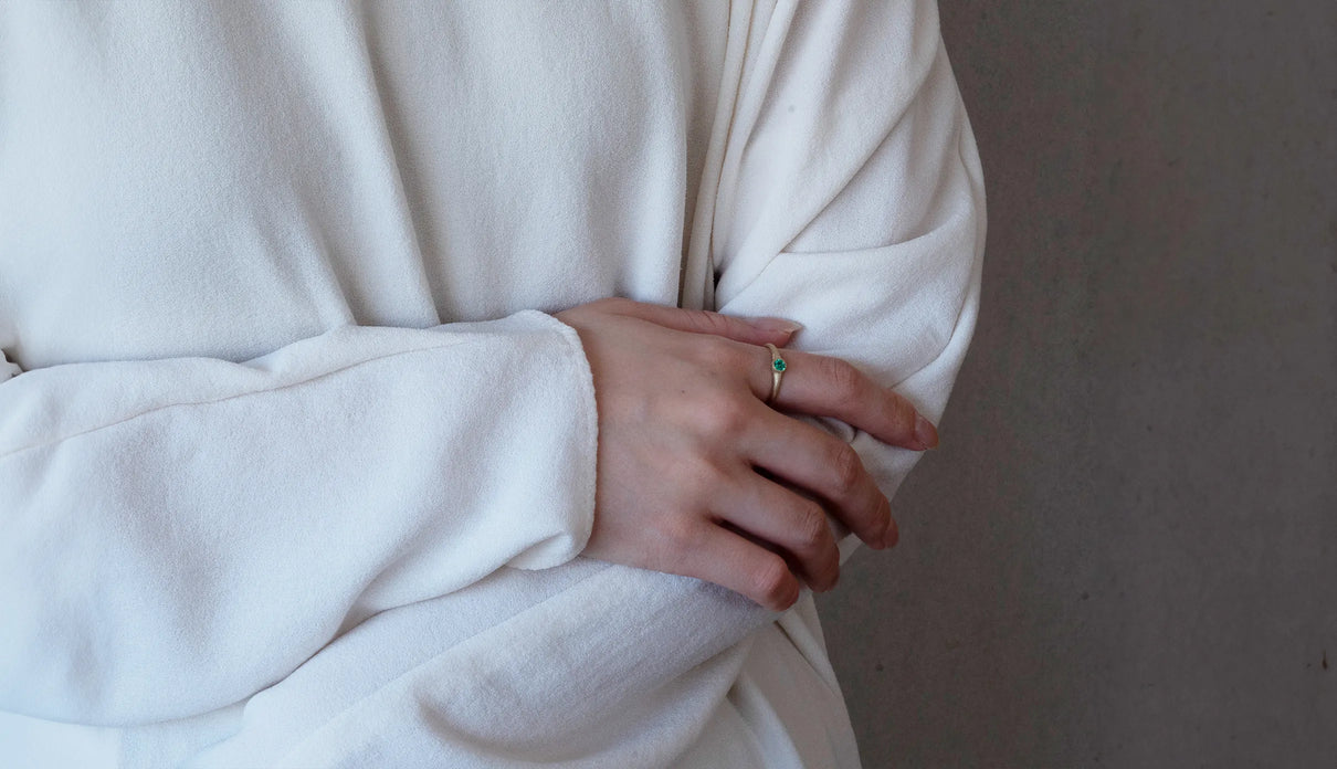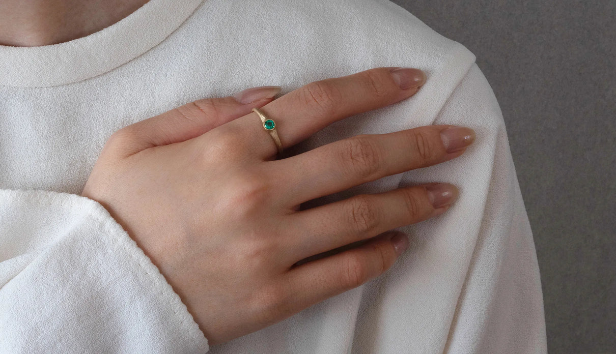 「ゆりかご」を意味する " Cradle " の名を持つリング。高い透明度を誇る色鮮やかなエメラルドをゆりかごのように優しく包み込むデザインが、穏やかな曲線を描きながら指元を飾ります。なめらかな着け心地で日常使いに最適なリング。5月の誕生石としても親しまれているエメラルドは、5月生まれの方の特別なお守りとして贈りものにも最適なアイテムです。