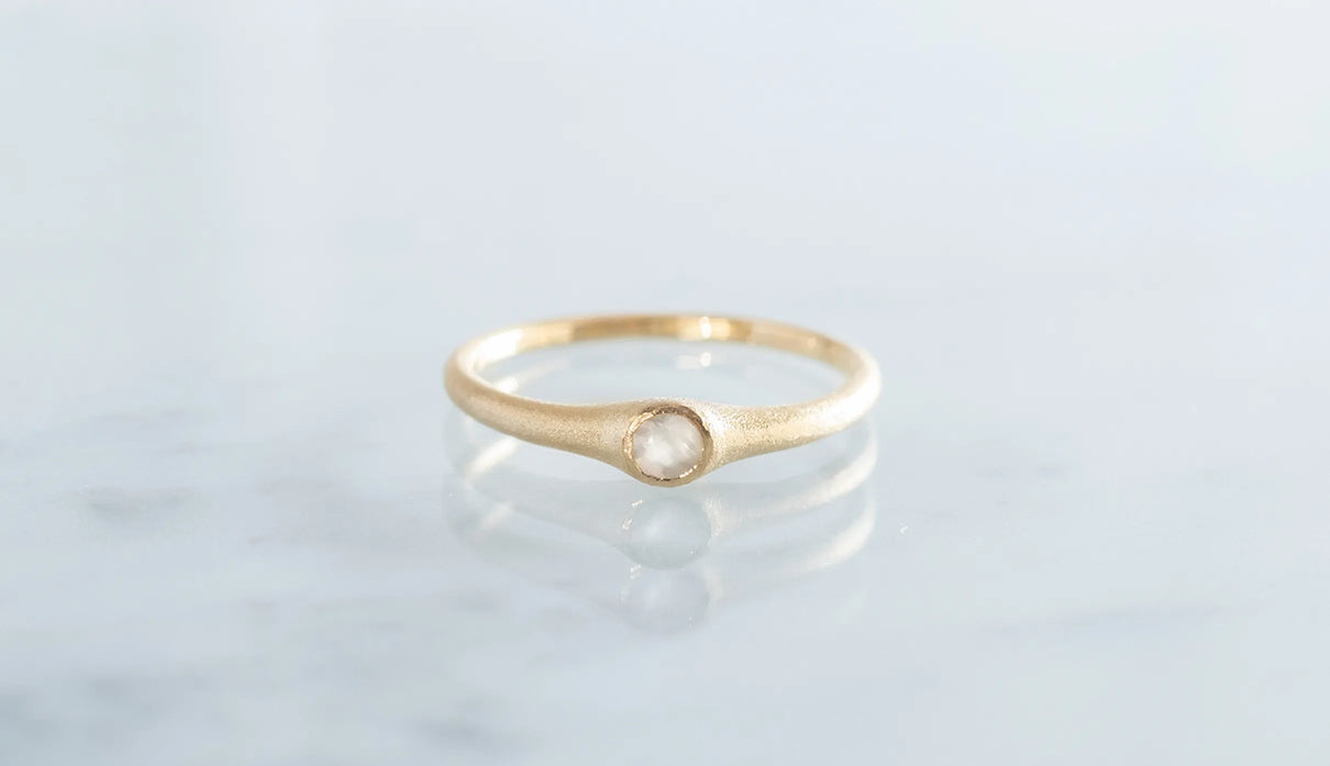 「ゆりかご」を意味する " Cradle " の名を持つリング。月光のような柔らかな光を纏うムーンストーンをゆりかごのように優しく包み込むデザインが、穏やかな曲線を描きながら指元を飾ります。6月の誕生石としても親しまれているムーンストーン。6月生まれの方の特別なお守りとして贈りものにも最適なアイテムです。