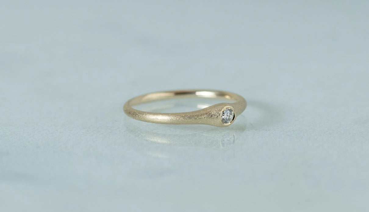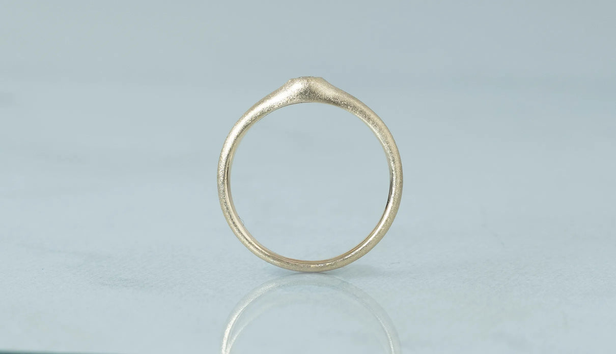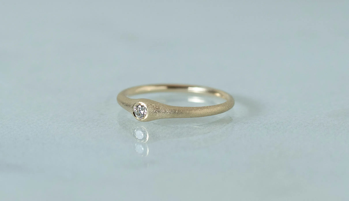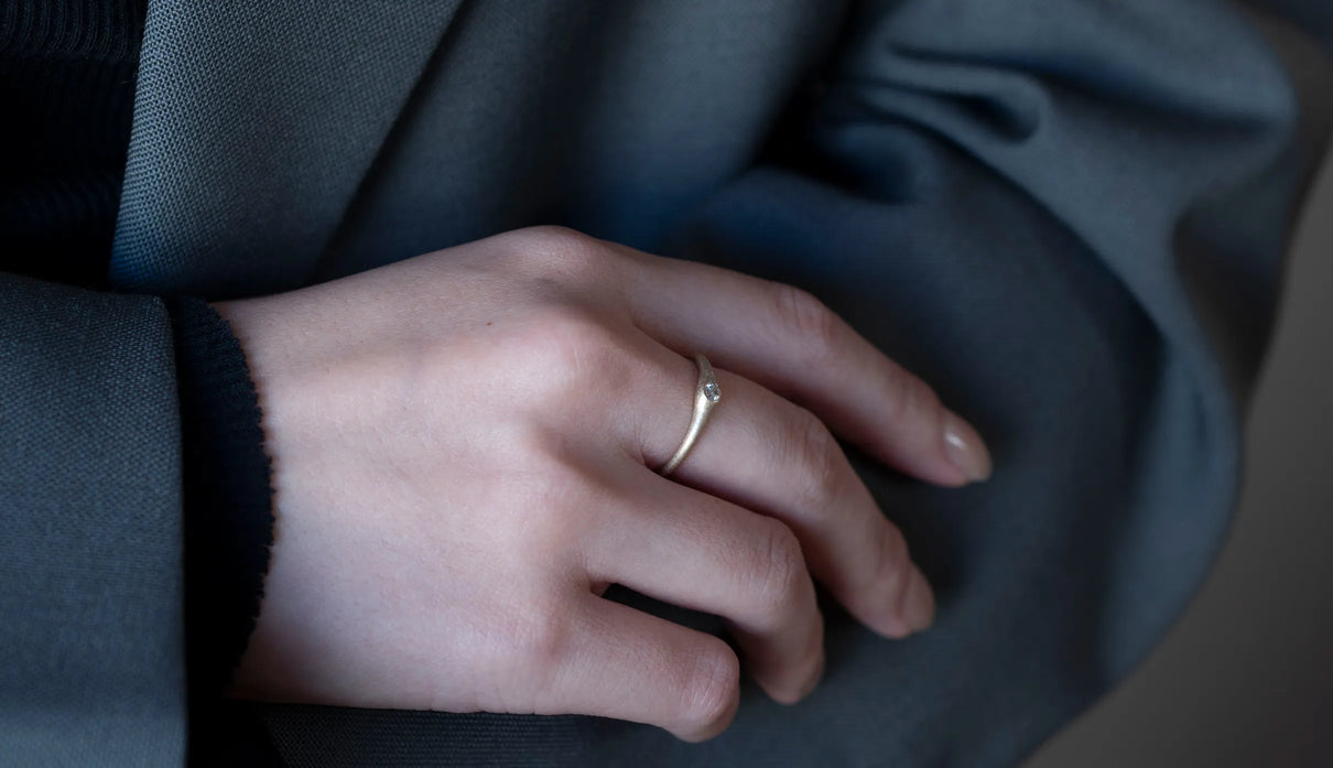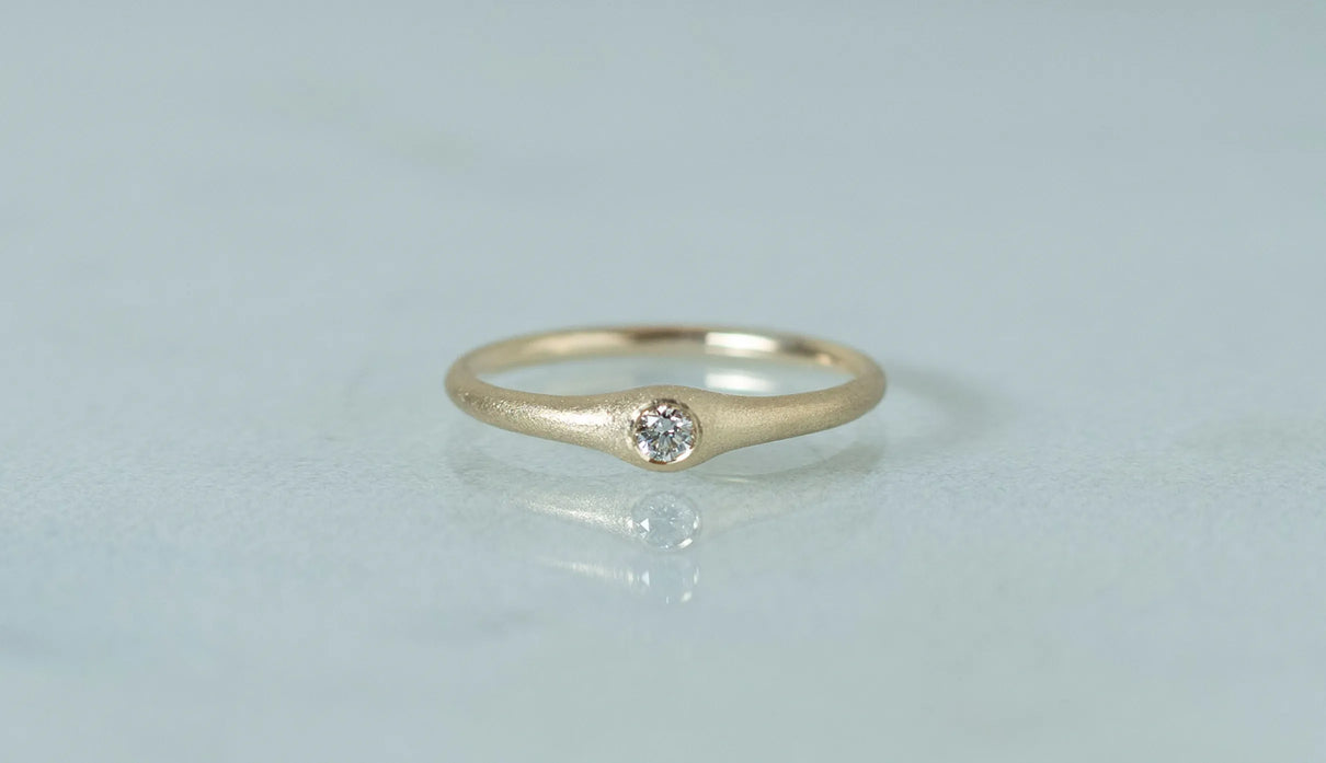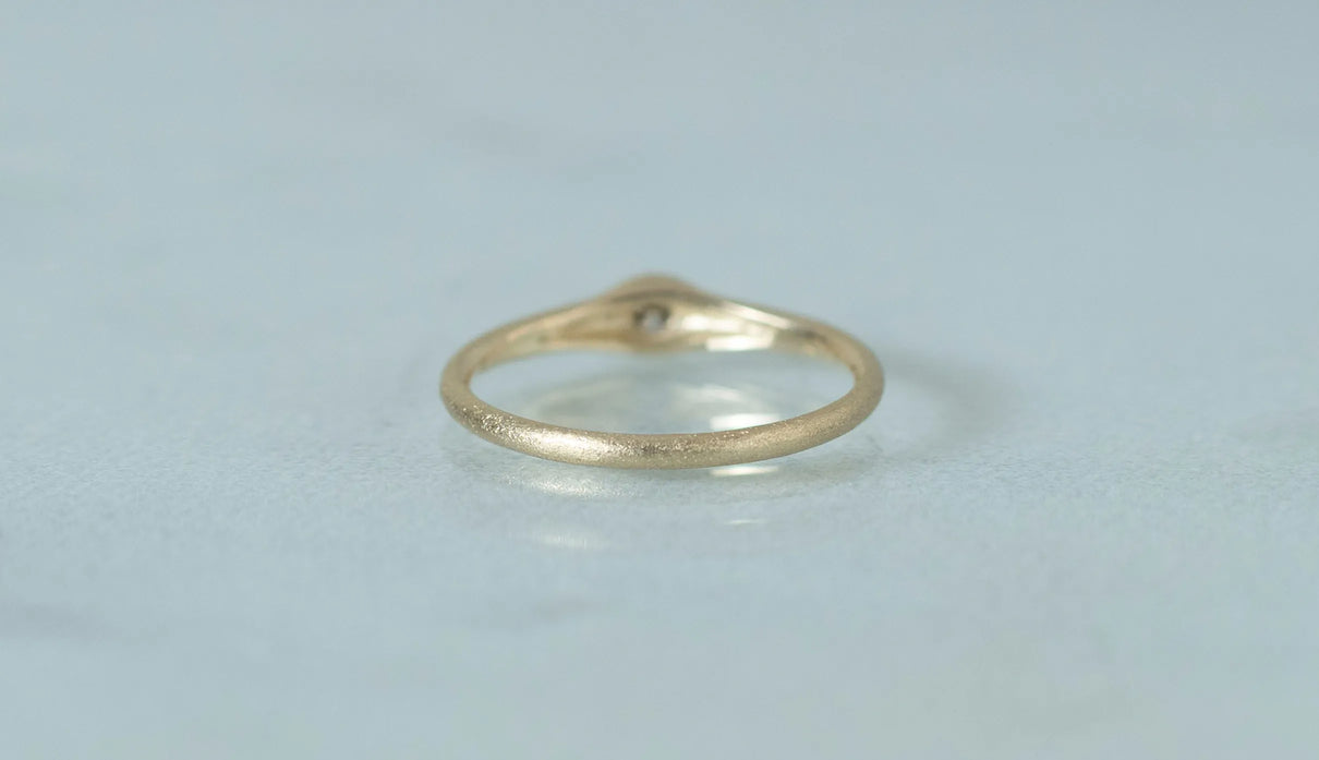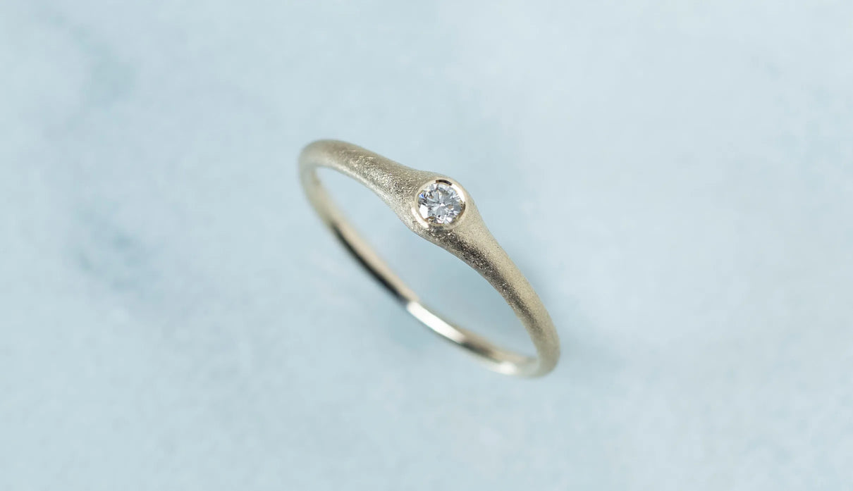 「ゆりかご」を意味する " Cradle " の名を持つリング。控えめなサイズながら上品な輝きを放つラウンドカットのダイヤモンドを、ゆりかごのように優しく包み込むデザインが、穏やかな曲線を描きながら指元を飾ります。なめらかな着け心地で日常使いに最適なリング。大切な方への贈り物にもおすすめです。