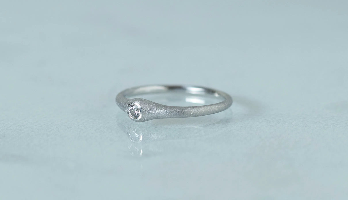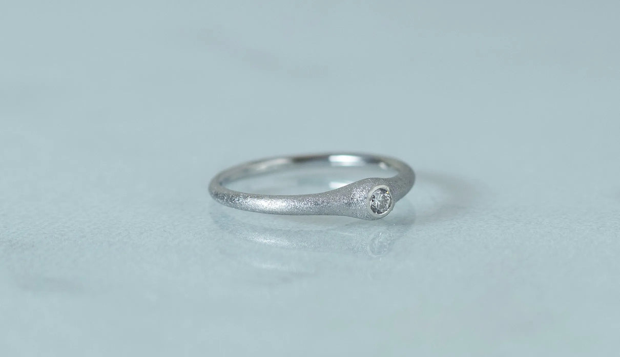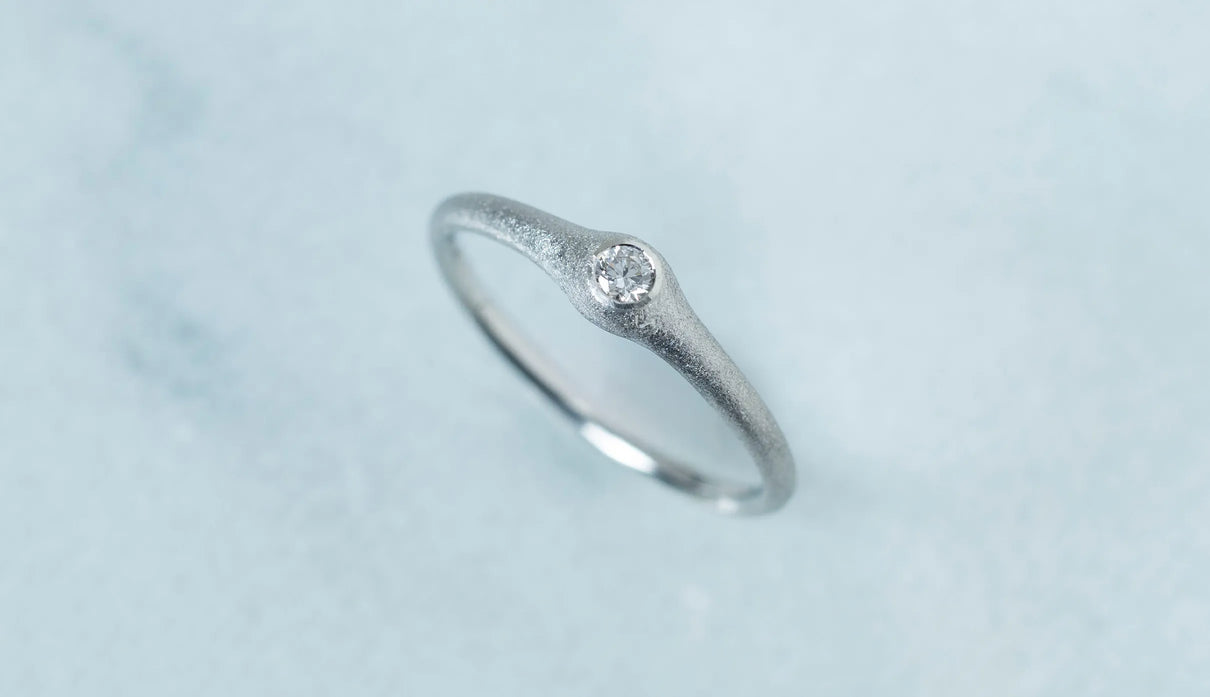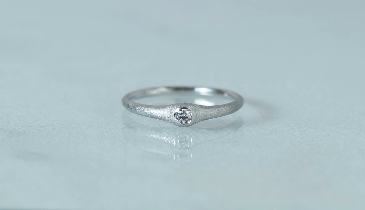 「ゆりかご」を意味する " Cradle " の名を持つリング。控えめなサイズながら上品な輝きを放つラウンドカットのダイヤモンドを、ゆりかごのように優しく包み込むデザインが、穏やかな曲線を描きながら指元を飾ります。なめらかな着け心地で日常使いに最適なリング。大切な方への贈り物にもおすすめです。