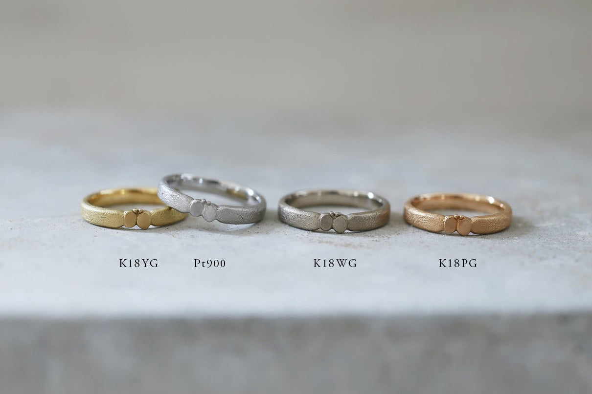 リングの素材はPt900(プラチナ) 、 K18YG(イエローゴールド) 、K18WG(ホワイトゴールド)、K18PG(ピンクゴールド)よりお選びいただけます。
