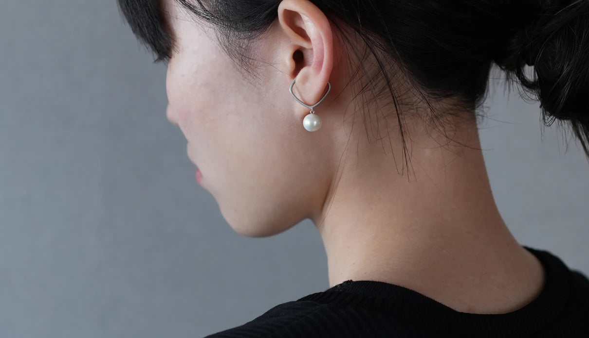 三味線の形から着想を得て作られたSyamiシリーズ。マットテクスチャーを施した柔らかなスクエア型のアームから、パールが溢れる様にぶら下がるイヤーカフです。動くたびパールがゆらゆらと心地よく揺れて、耳元を華やかに演出します。自然が育んだたおやかなフォルムで、上質な艶を放つ淡水パールが、シルバーのイヤーカフに艶やかに映え、耳元に上品な華を添える一点もののアイテムです。