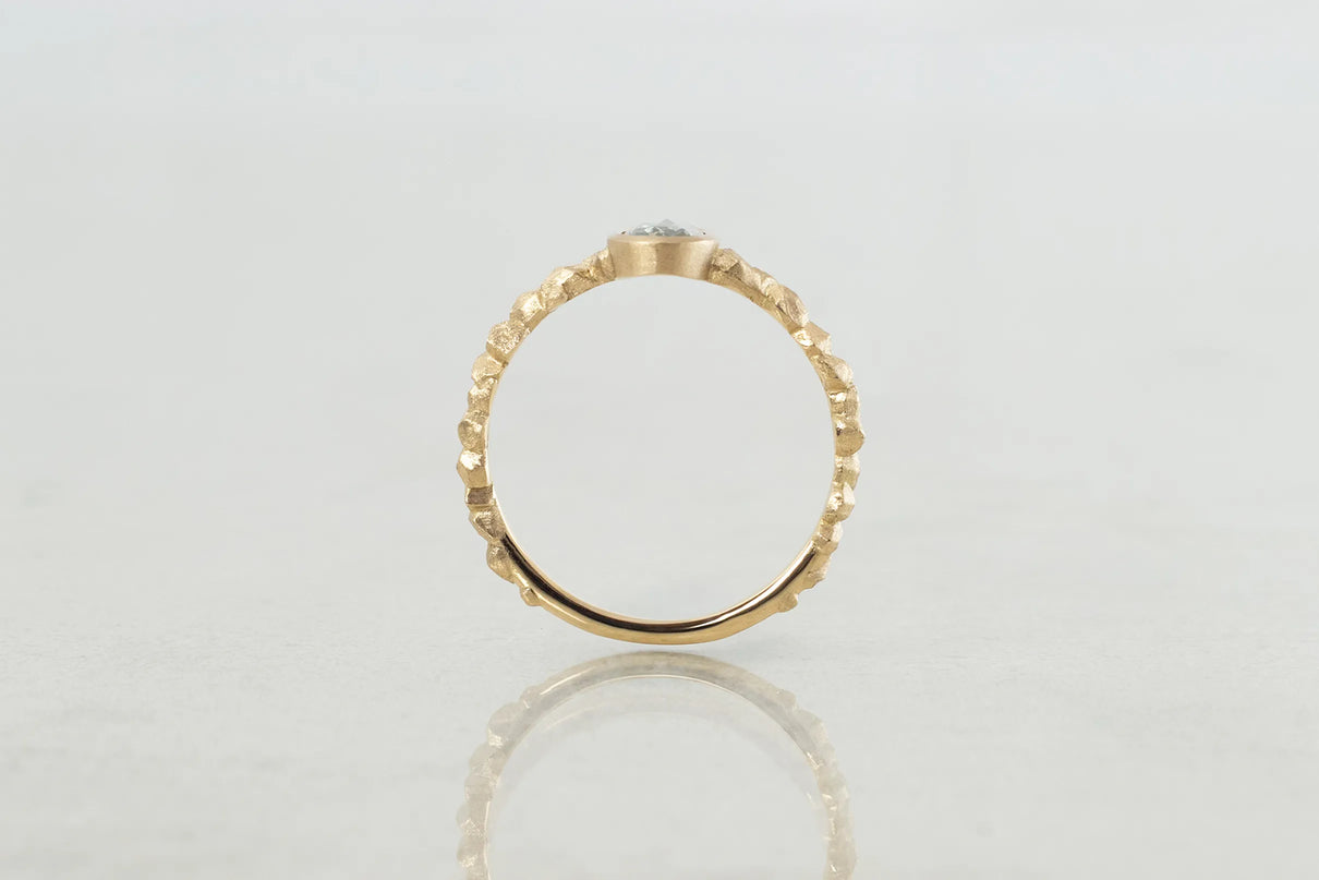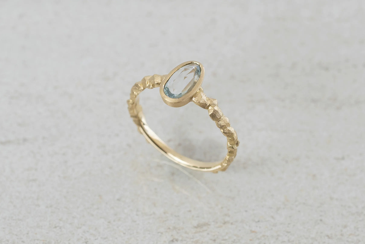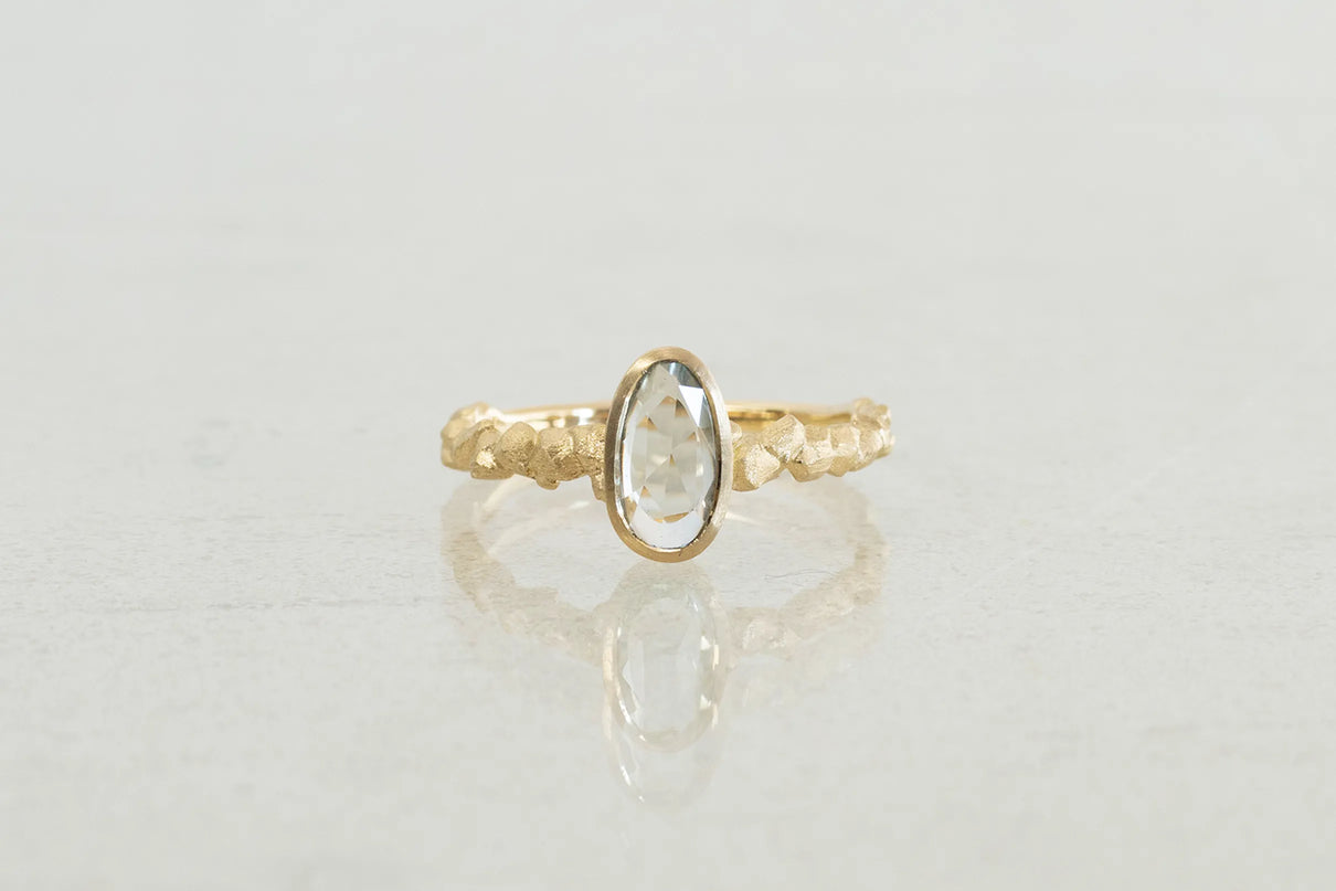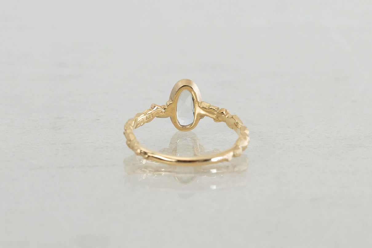 森の奥にひそむ、小さきもの達の静かなる営みをモチーフにした "Whisperシリーズ" 。有機的な連なりをもつK18イエローゴールドのアームに、瑞々しい色彩を放つキャンディーカラーのサファイアを留めた一点もののリングです。優しいペールトーンの彩りが華やかに煌めくグリーンカラーのキャンディーサファイアと、有機的なWhisperのリングアームのコントラストが互いを引き立て、指元に繊細で印象的な存在感を放ちます。日常的に身に着けていただくのはもちろん、9月の誕生石としても親しまれているサファイアは、9月生まれの方の特別なお守りとして贈りものにも最適です。