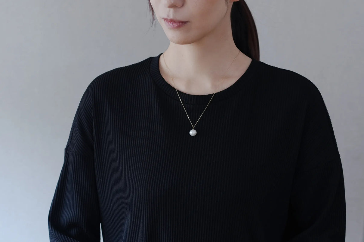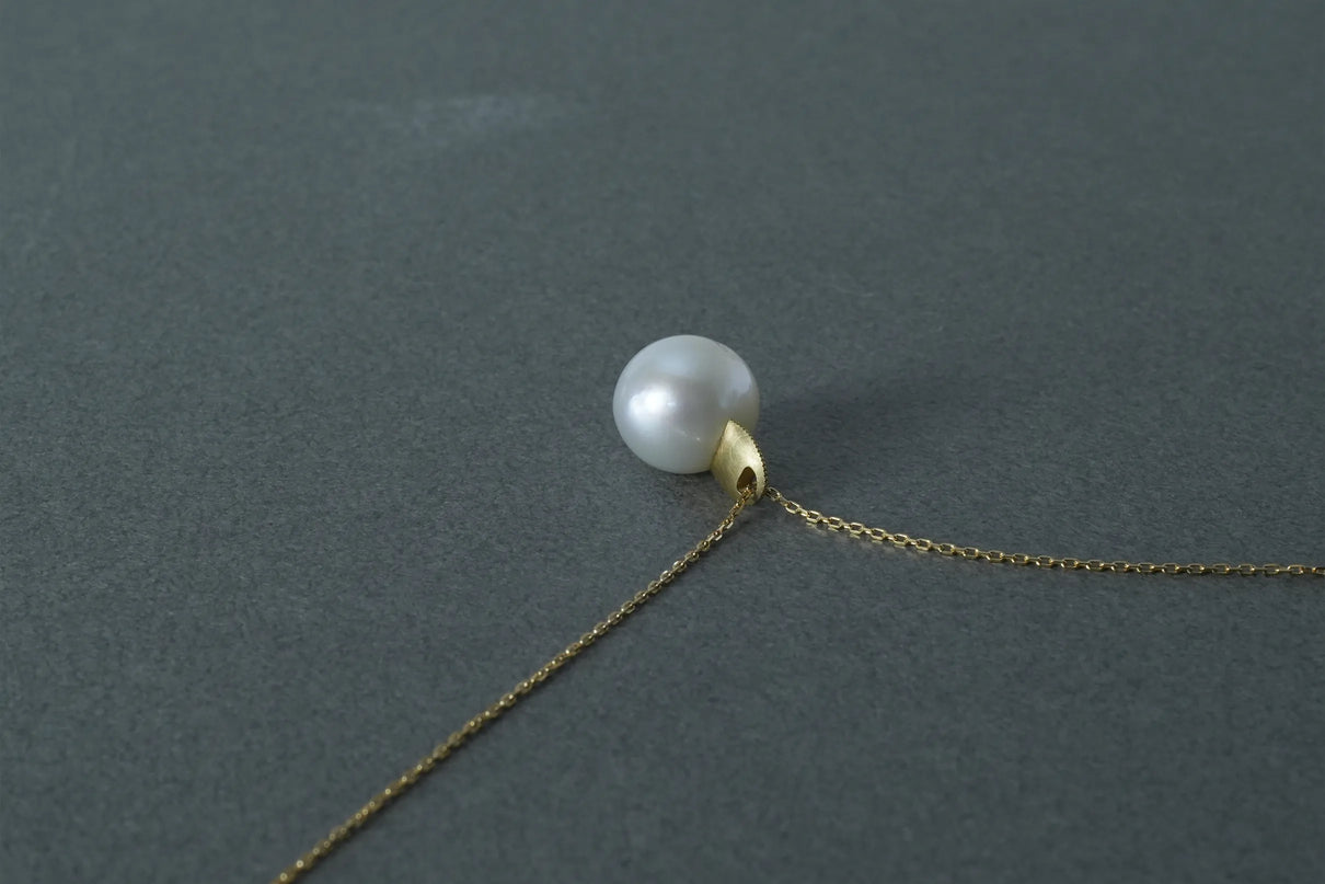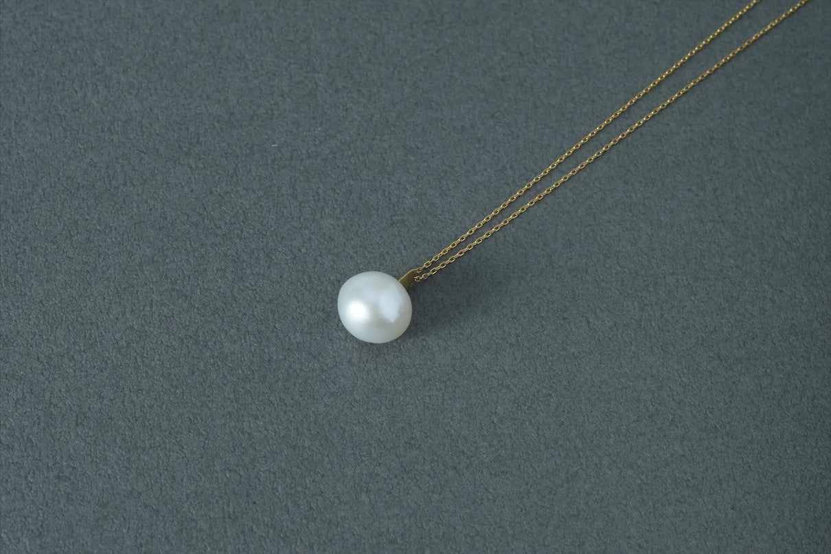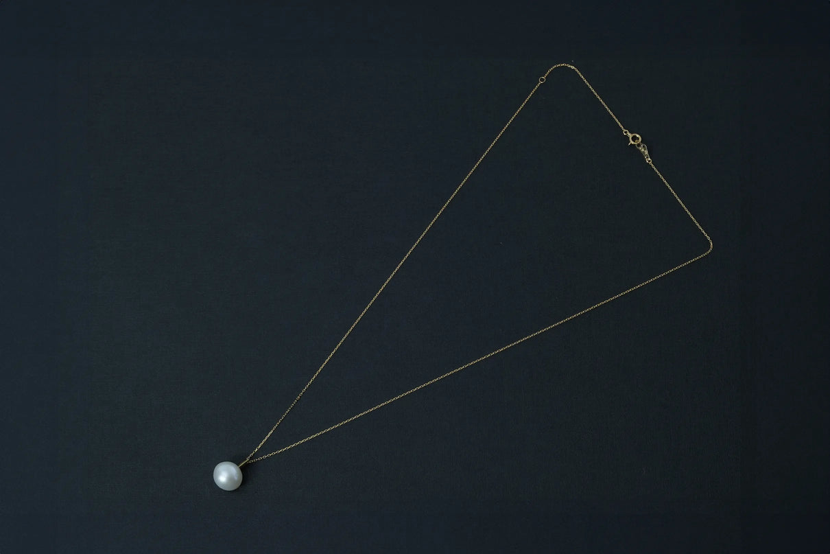 自然が育んだ柔らかなフォルムの南洋パールで仕立てた一点もののネックレス。南洋の海で採取される上質な南洋パールの美しい照りが装いに品格を与えます。大粒のパールとチェーンを繋ぐ、マットな表情を施したK18イエローゴールドのパーツがネックレス全体に抑揚を与え、華やかさを引き立てています。バランスの取りやすい約50cmのミドルレングス。日常使いはもちろん、ハレの日の装いにもおすすめです。