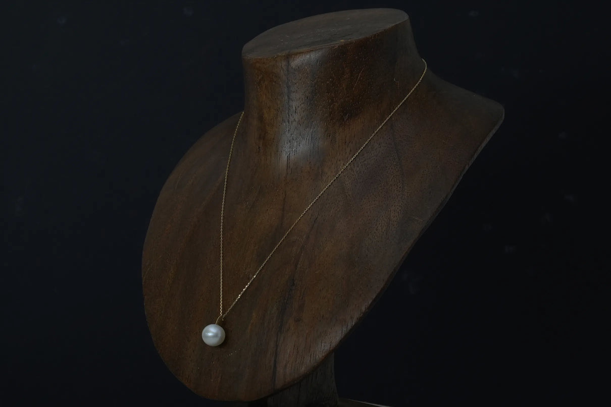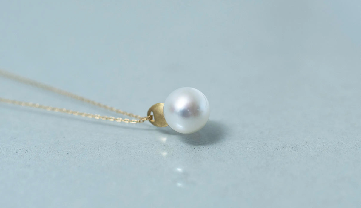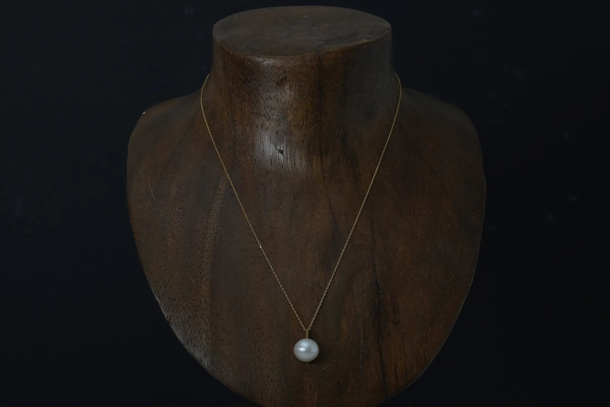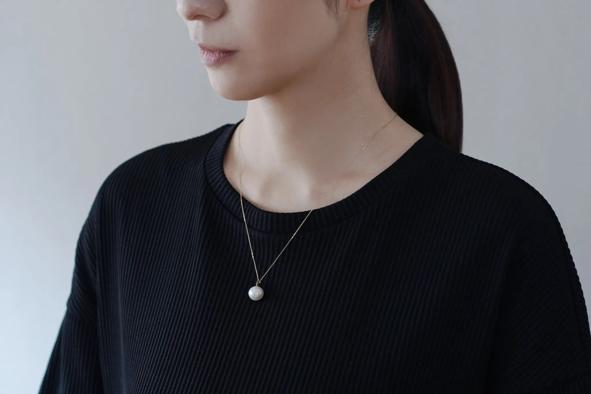 自然が育んだ柔らかなフォルムの南洋パールで仕立てた一点もののネックレス。南洋の海で採取される上質な南洋パールの美しい照りが装いに品格を与えます。大粒のパールとチェーンを繋ぐ、マットな表情を施したK18イエローゴールドのパーツがネックレス全体に抑揚を与え、華やかさを引き立てています。バランスの取りやすい約50cmのミドルレングス。日常使いはもちろん、ハレの日の装いにもおすすめです。