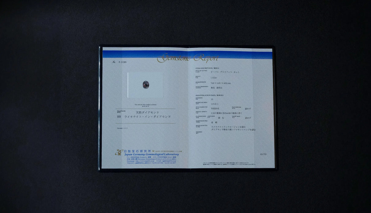 ※本商品にはライモナイトインダイヤモンドの鑑別書が付きます。