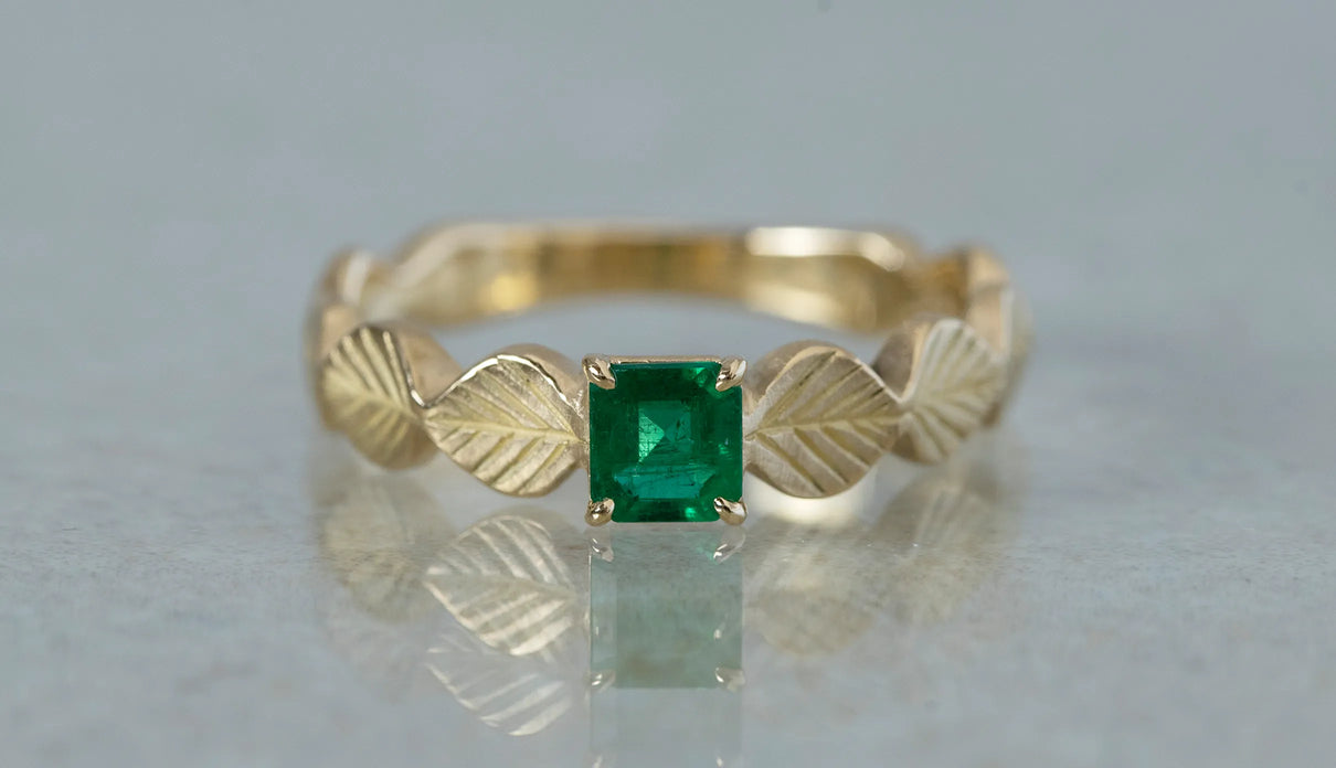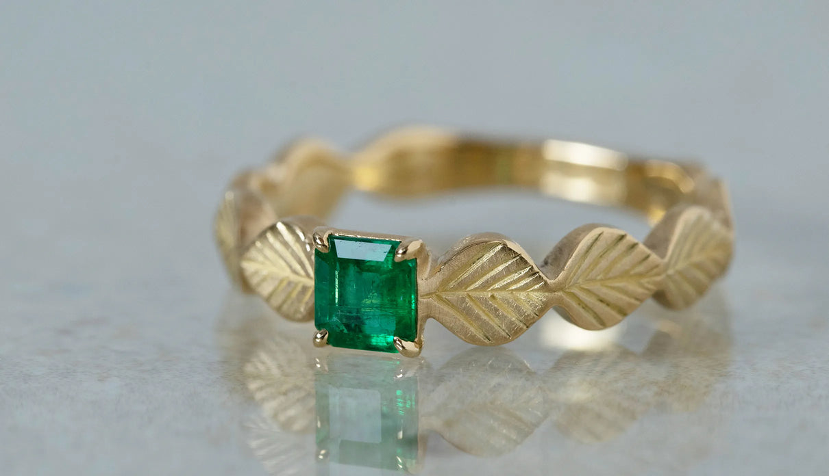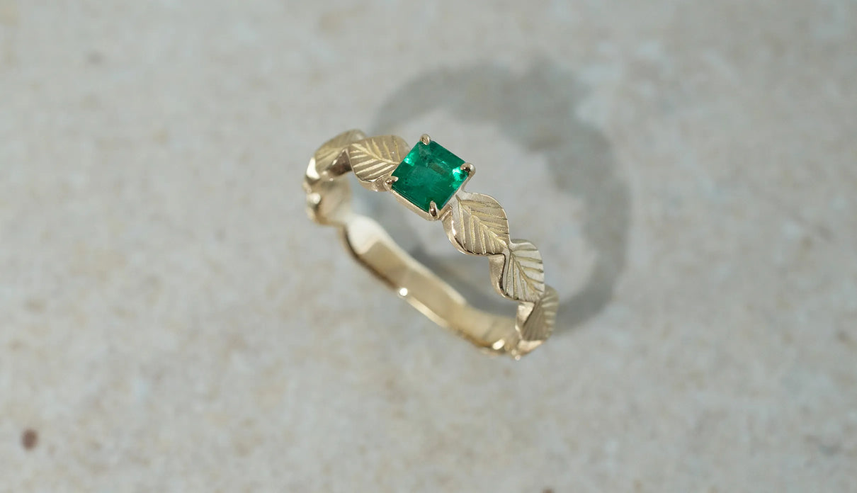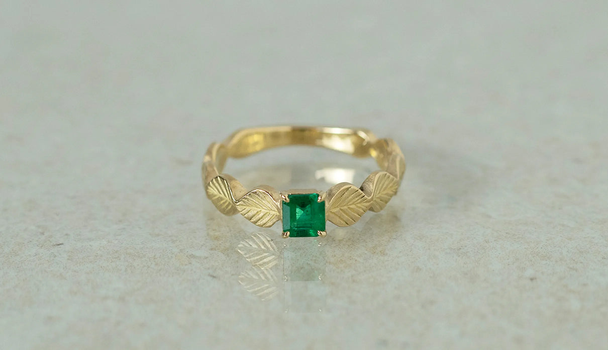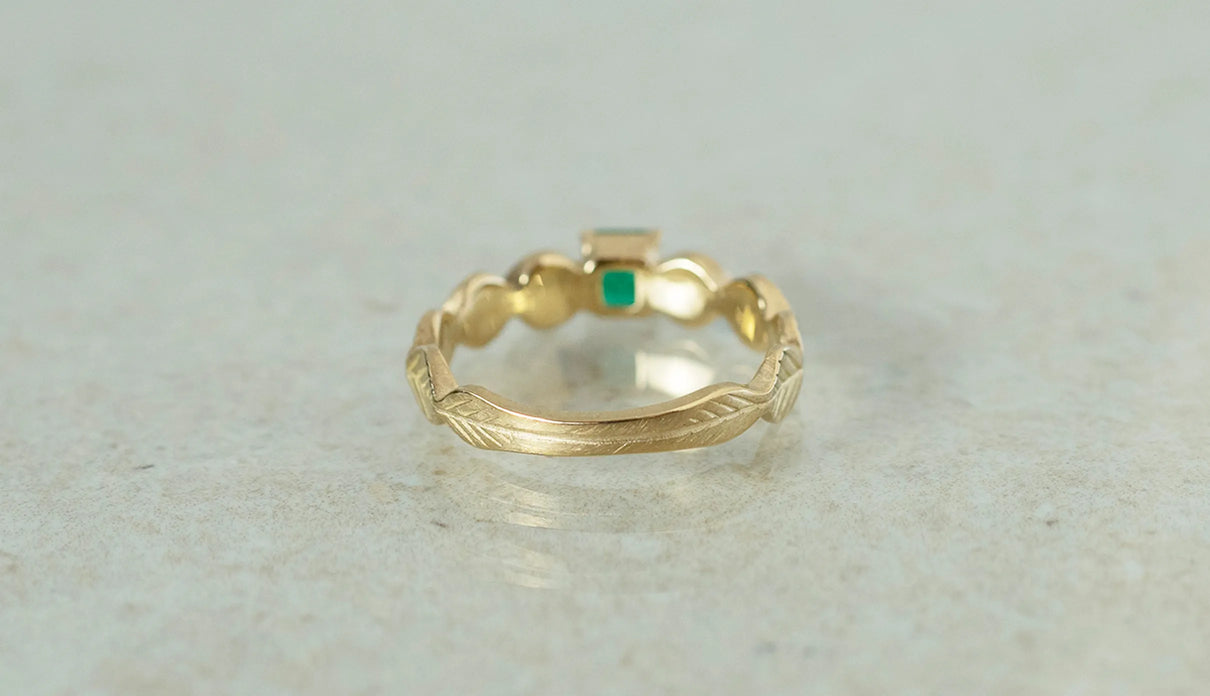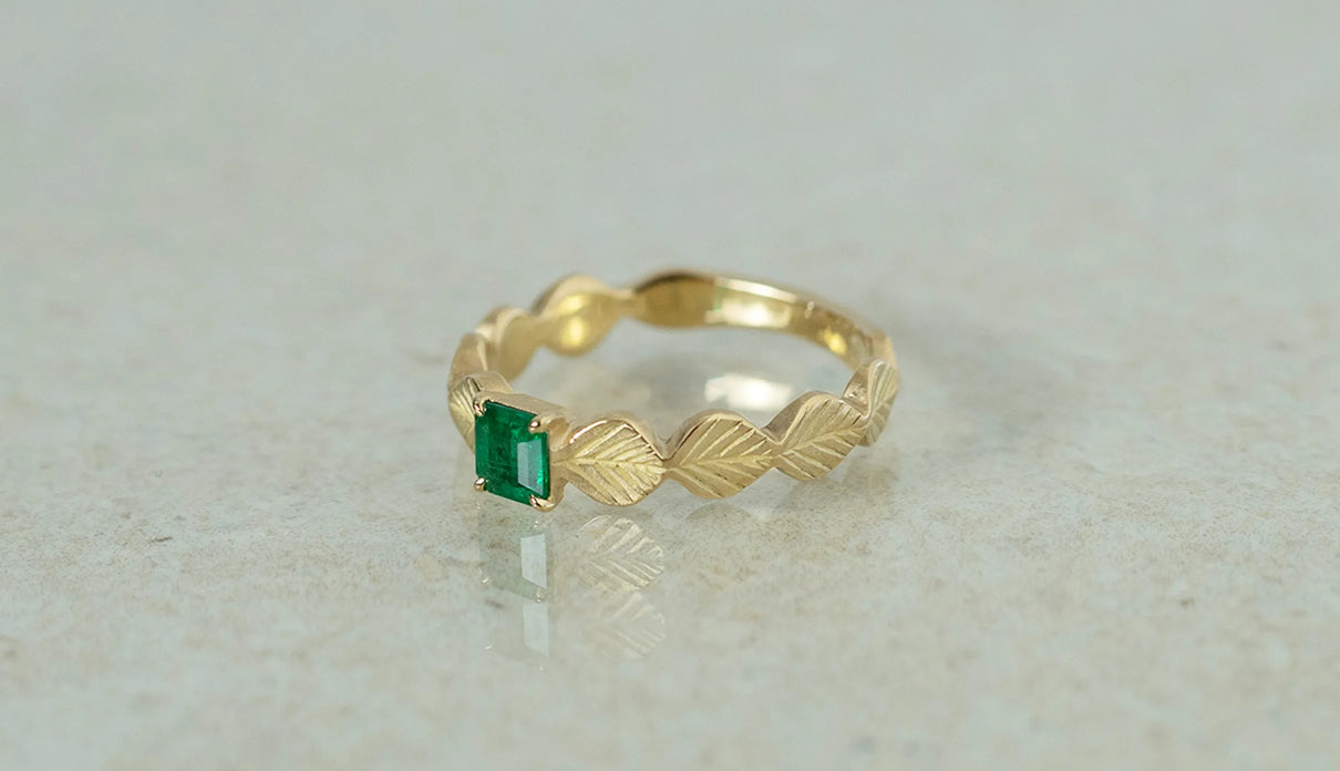 Leaf ring + emerald