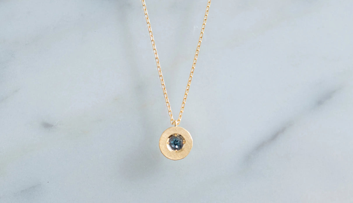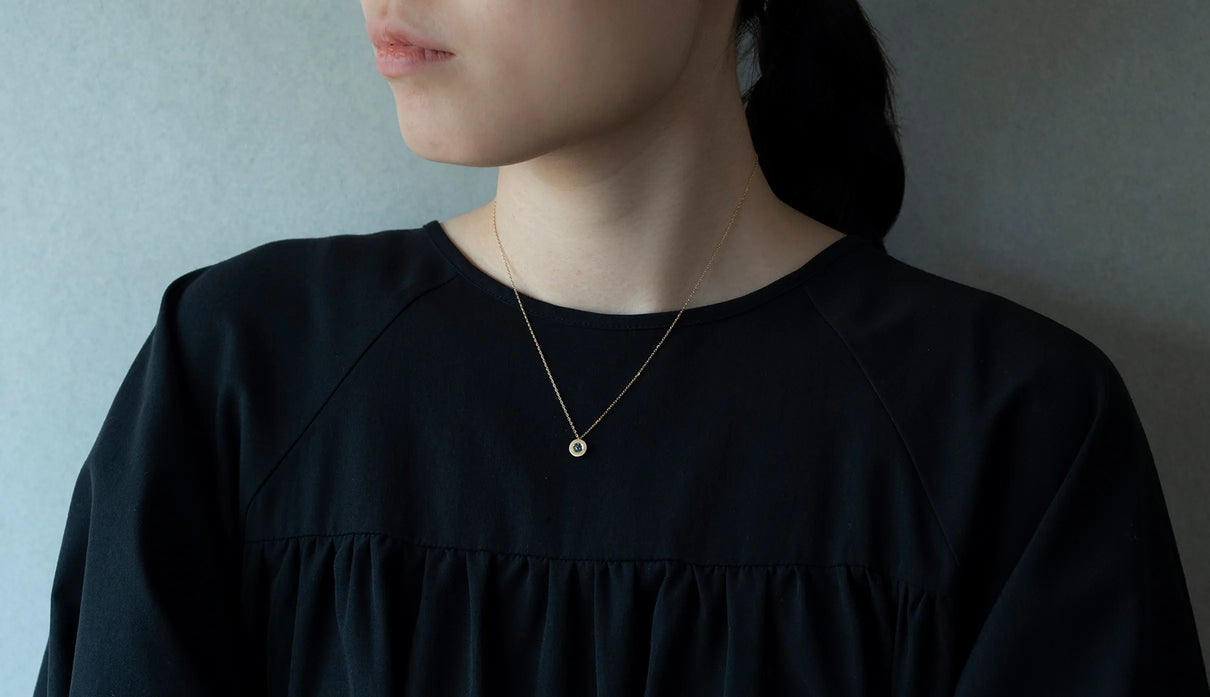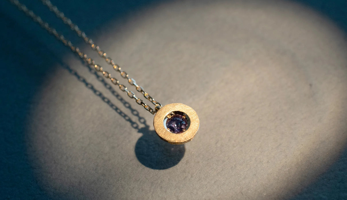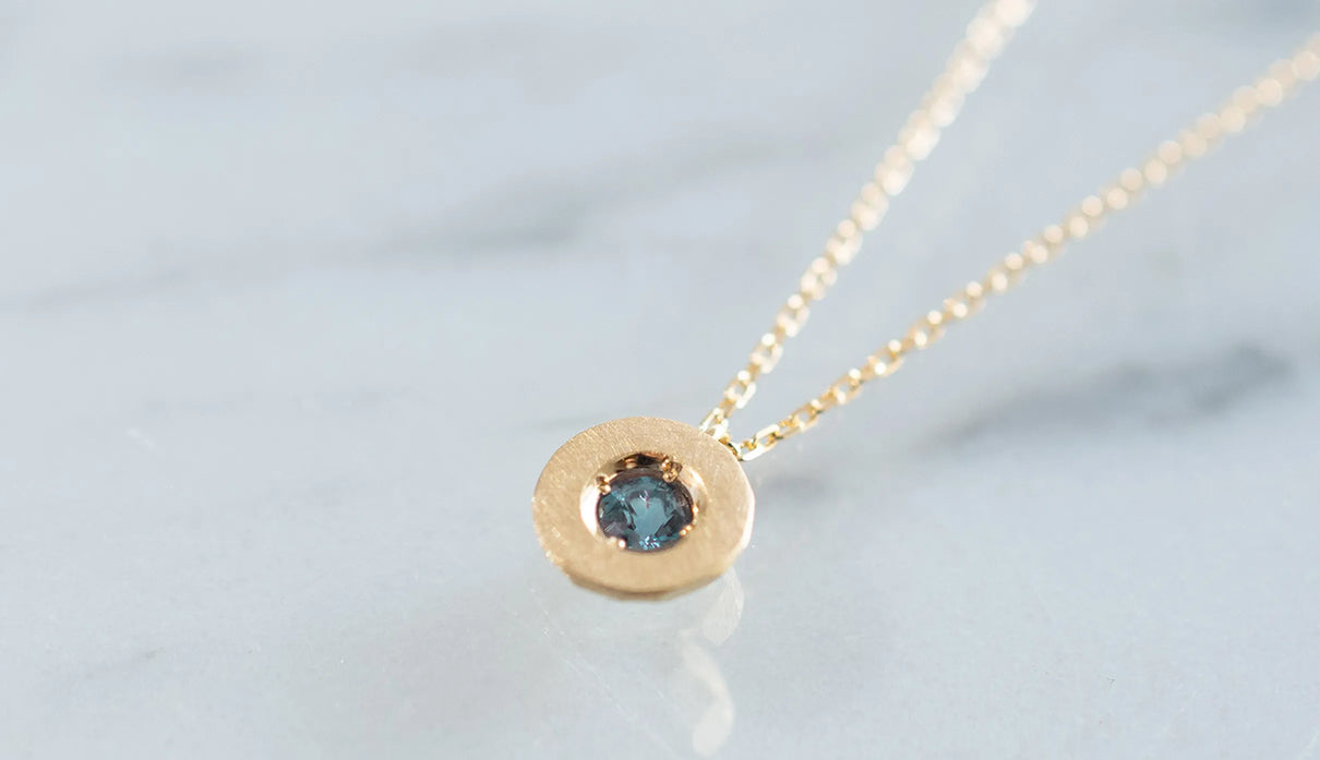 「昼のエメラルド・夜のルビー」と呼ばれ、太陽光や蛍光灯下では深い青緑色、白熱灯下では赤紫色に変化して見える希少性の高い天然石、アレキサンドライトを上下左右の4点で留めたネックレス。" Enfold " =「包み込む」を意味する名の通り、アレキサンドライトがK18イエローゴールドのフレームを纏うようにあしらい、トップの裏は荒く削りだしたような面が織りなすラフカットのテクスチャーを施しました。6月の誕生石アレキサンドライトは、6月生まれの方の特別なお守りとして贈りものにも最適なアイテムです。