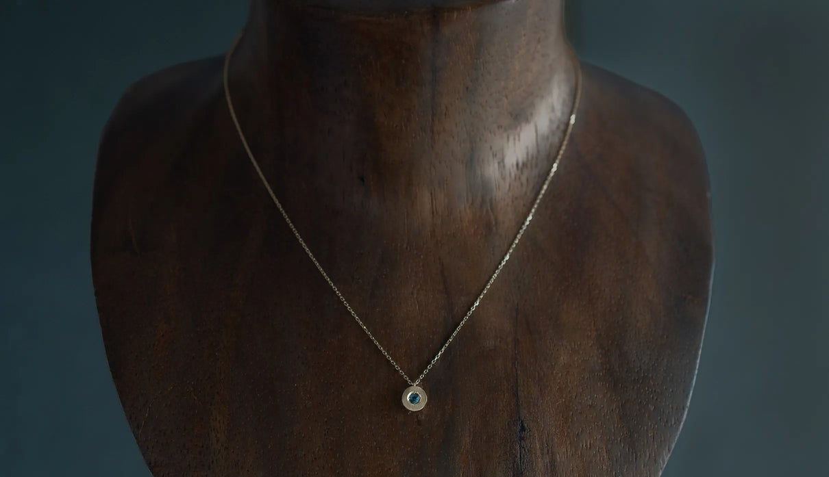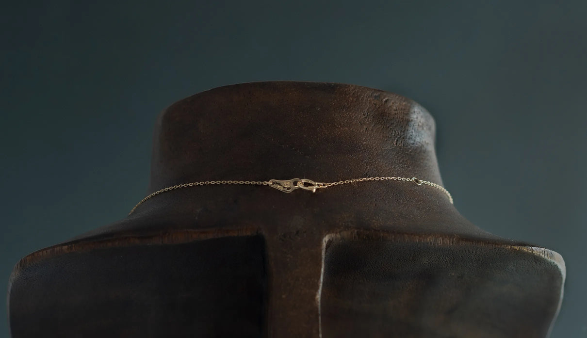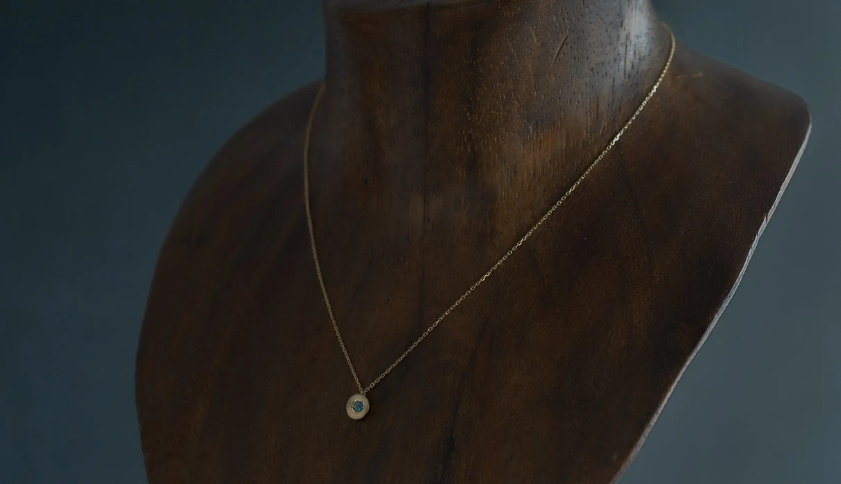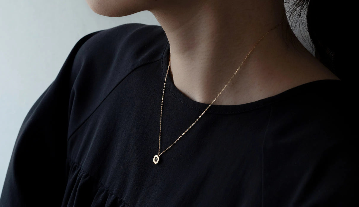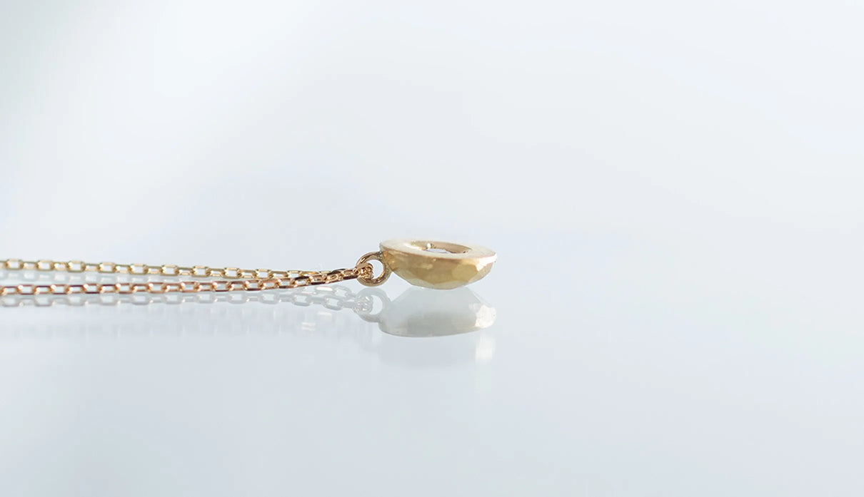 「昼のエメラルド・夜のルビー」と呼ばれ、太陽光や蛍光灯下では深い青緑色、白熱灯下では赤紫色に変化して見える希少性の高い天然石、アレキサンドライトを上下左右の4点で留めたネックレス。" Enfold " =「包み込む」を意味する名の通り、アレキサンドライトがK18イエローゴールドのフレームを纏うようにあしらい、トップの裏は荒く削りだしたような面が織りなすラフカットのテクスチャーを施しました。6月の誕生石アレキサンドライトは、6月生まれの方の特別なお守りとして贈りものにも最適なアイテムです。