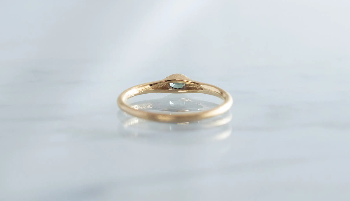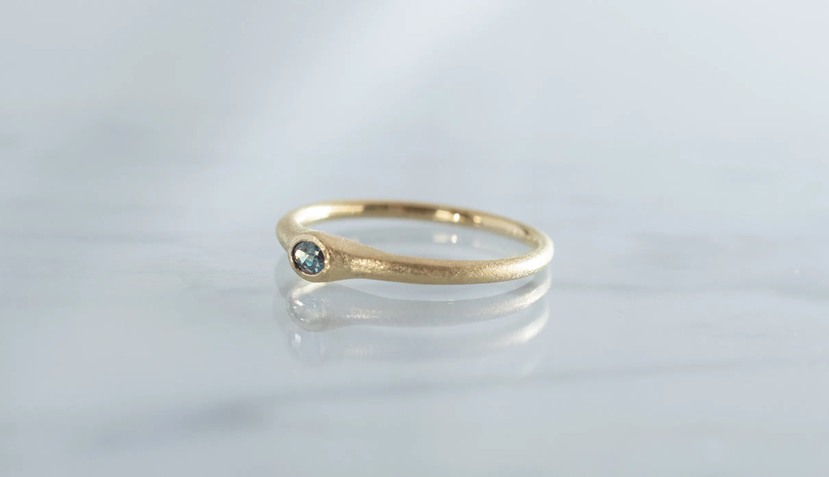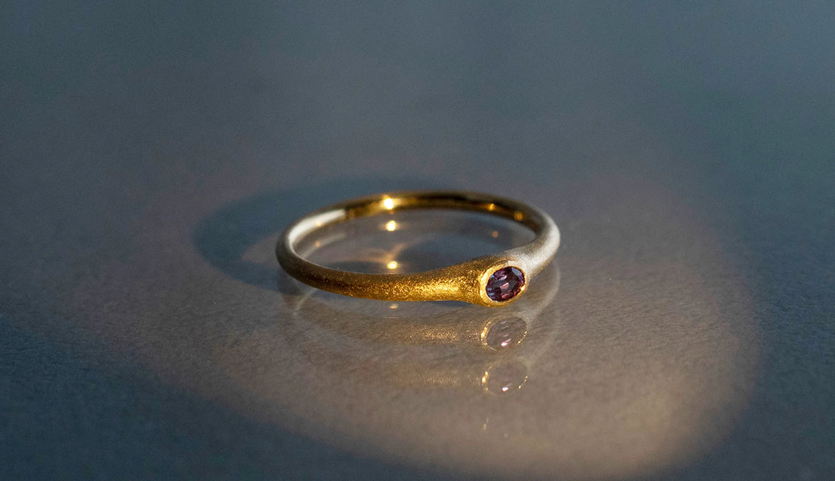 「ゆりかご」を意味する " Cradle " の名を持つリング。「昼のエメラルド・夜のルビー」と呼ばれ、太陽光や蛍光灯下では深い青緑色、白熱灯下では赤紫色に変化して見える希少性の高い天然石、アレキサンドライトをゆりかごのように優しく包み込むデザインが、穏やかな曲線を描きながら指元を飾ります。今回選んだのは、美しい照りと深く鮮やかなブルーグリーンの色彩を秘めた上質なピース。日常の光の中での発色はもちろんのこと、白熱灯の下ではしっかりとカラーチェンジを呈しています (写真8枚目) 。6月の誕生石としても親しまれているアレキサンドライト。6月生まれの方の特別なお守りとして贈りものにも最適なアイテムです。
