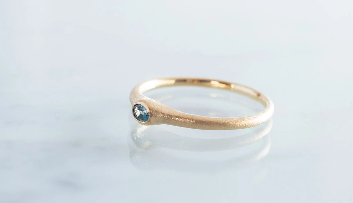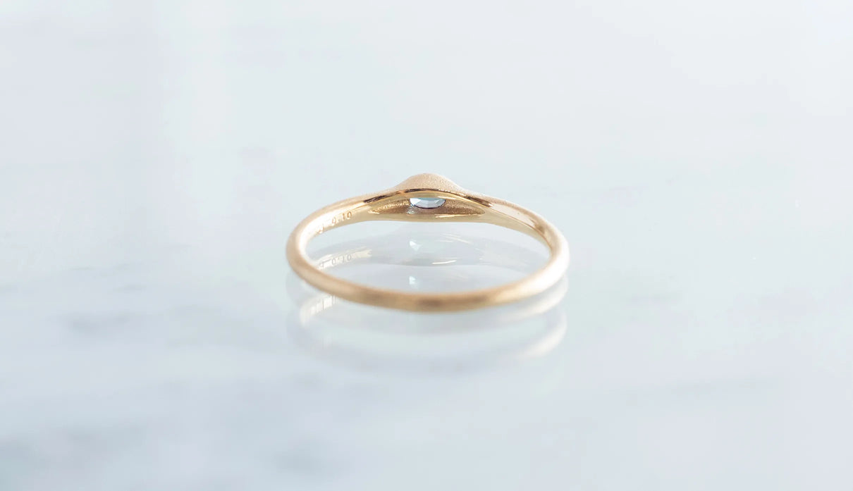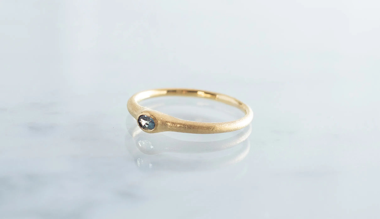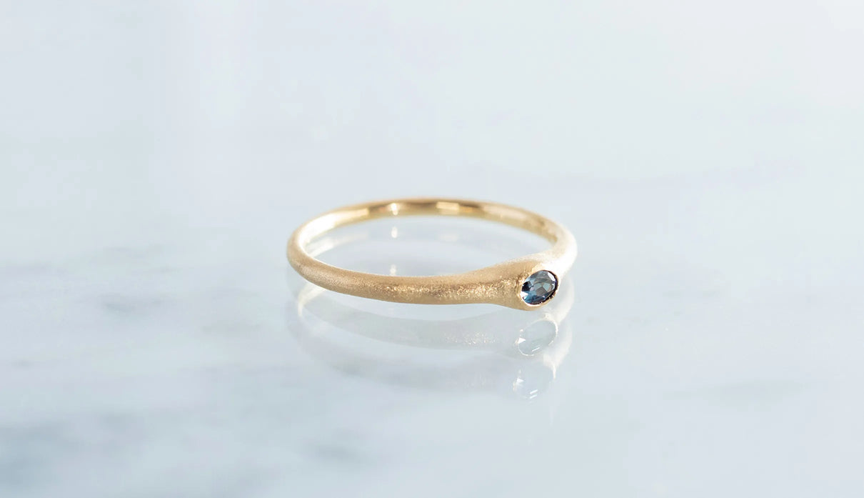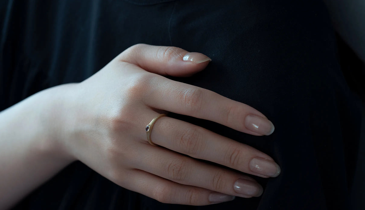 「ゆりかご」を意味する " Cradle " の名を持つリング。「昼のエメラルド・夜のルビー」と呼ばれ、太陽光や蛍光灯下では深い青緑色、白熱灯下では赤紫色に変化して見える希少性の高い天然石、アレキサンドライトをゆりかごのように優しく包み込むデザインが、穏やかな曲線を描きながら指元を飾ります。今回選んだのは、美しい照りと深く鮮やかなブルーグリーンの色彩を秘めた上質なピース。日常の光の中での発色はもちろんのこと、白熱灯の下ではしっかりとカラーチェンジを呈しています (写真8枚目) 。6月の誕生石としても親しまれているアレキサンドライト。6月生まれの方の特別なお守りとして贈りものにも最適なアイテムです。