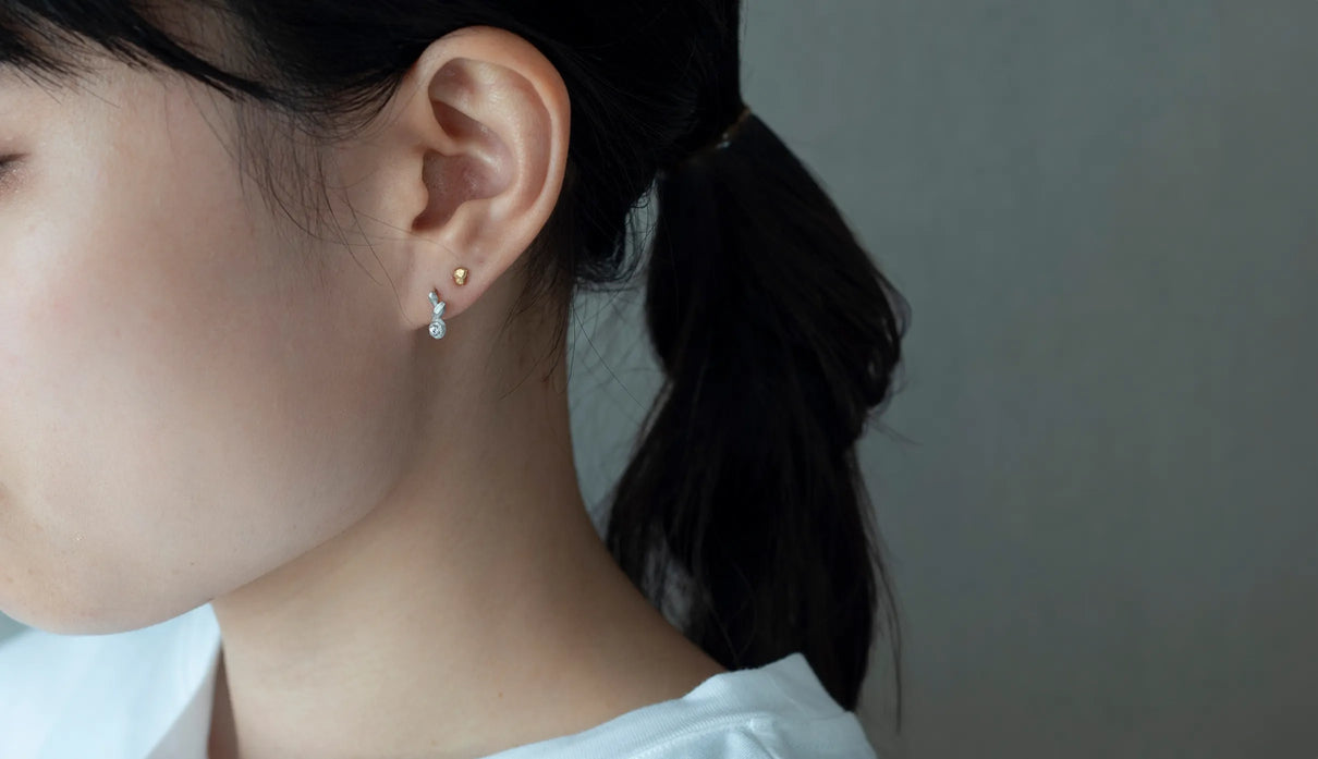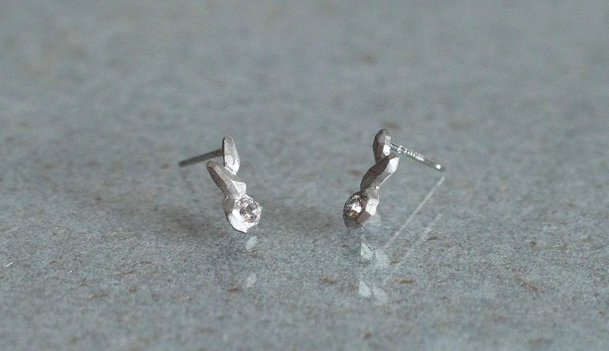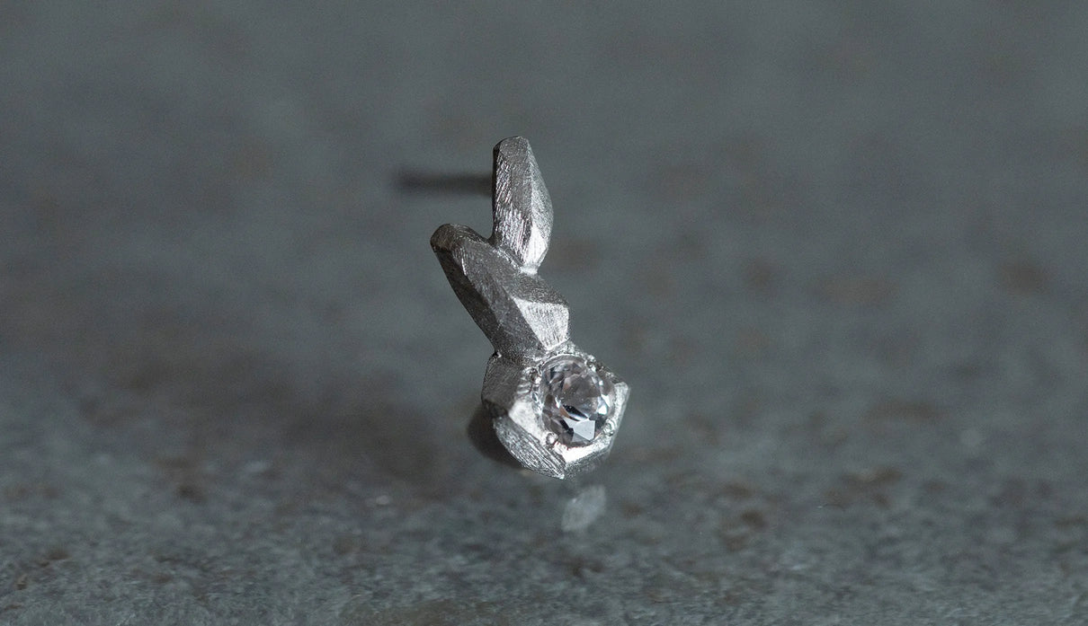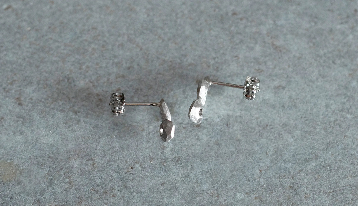 森の奥にひそむ、小さきものたちの静かなる営みをモチーフにした "Whisper" 。個性的な形のゴールドが有機的に連なる先端に、ホワイトサファイアがそっと優しい輝きをもたらす一点もののピアスです。耳たぶからこぼれるように留まるモチーフは、小さいながらも存在感のある輝きを放ちます。日常的に身に着けていただくのはもちろん、9月の誕生石としても親しまれているサファイアは、9月生まれの方の特別なお守りとして贈りものにも最適です。