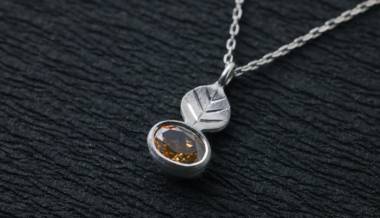 Leaf necklace + diamond (cognac brown)