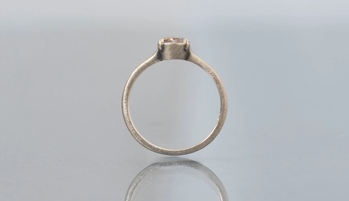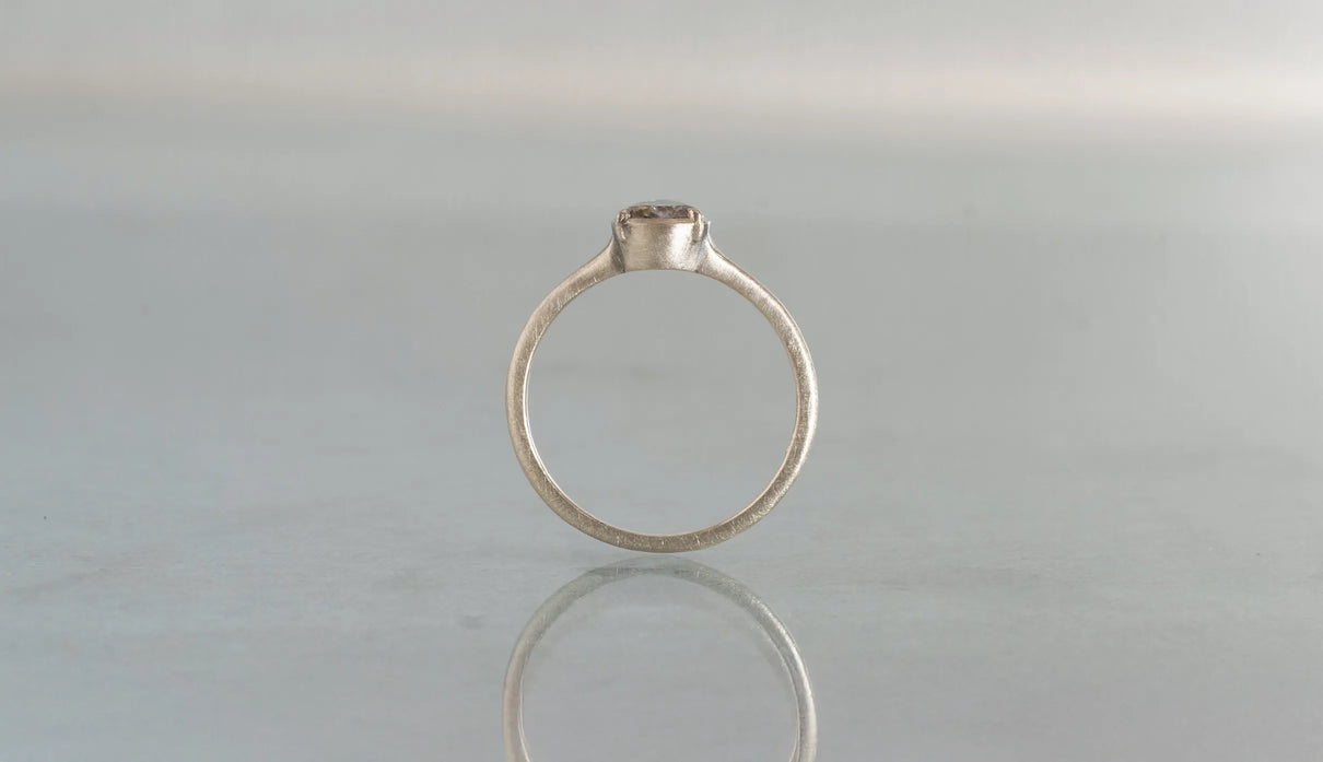 Ryui独自のアンティーク加工を施した K10「スモーキーゴールド」。K18ホワイトゴールドにも通じる落ち着いた淡いゴールドカラーで、身に着けるほどに少しずつ深みを帯び、時間とともに自分だけの表情へと育っていきます。