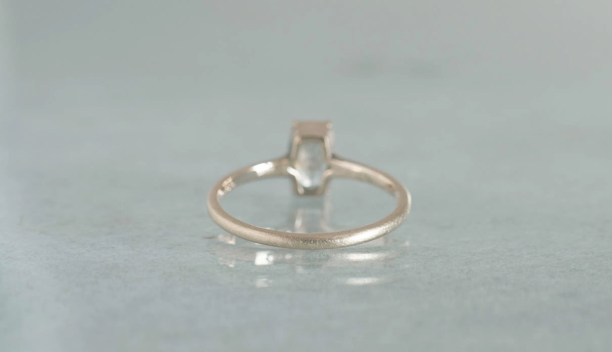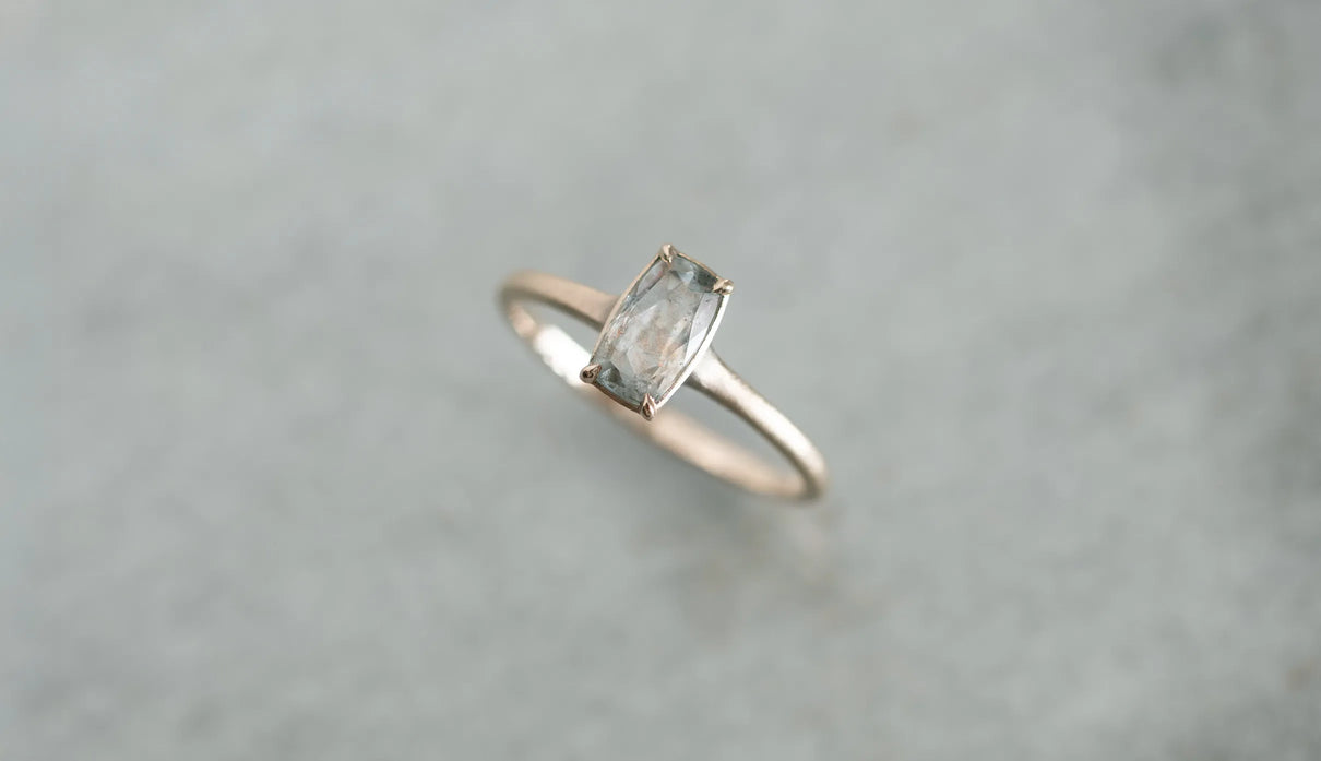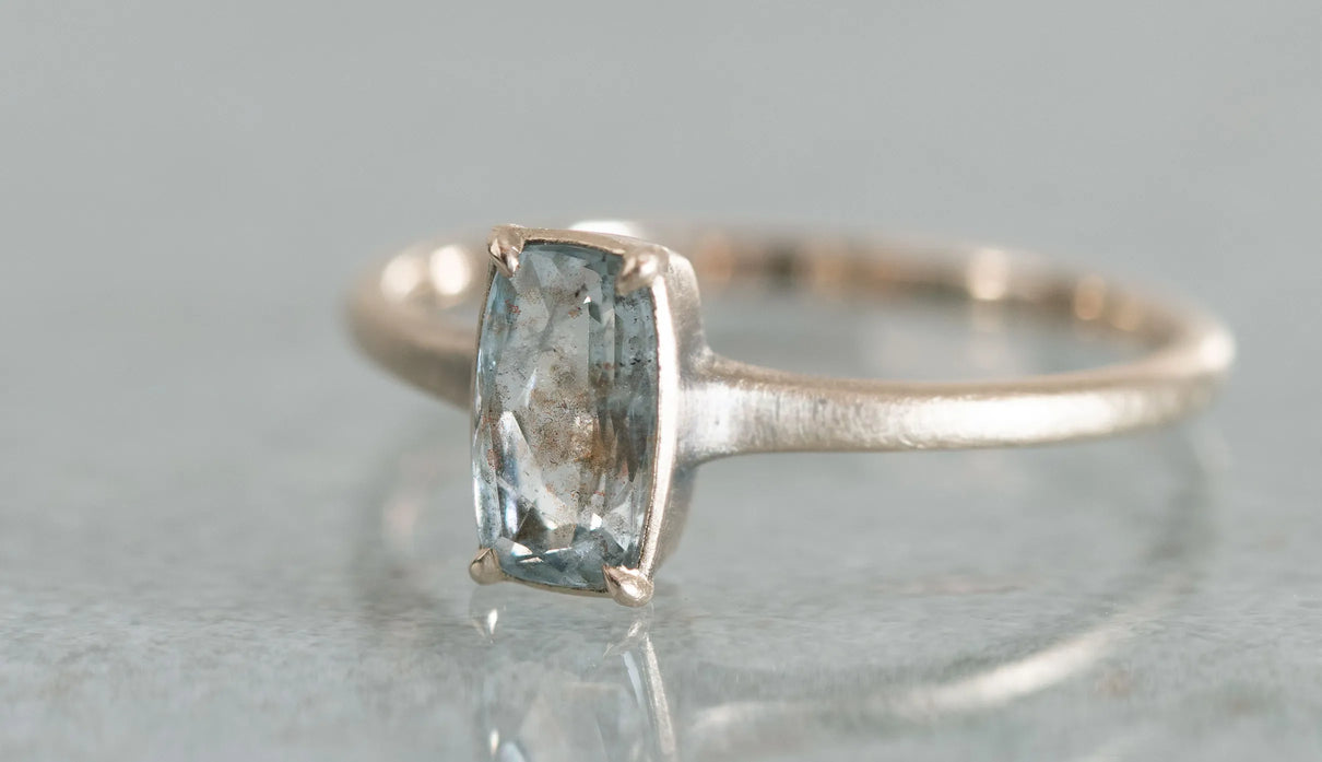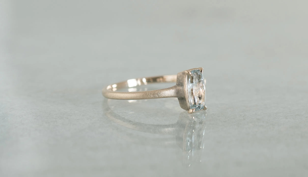 モスアクアマリンを留めた一点もののリング。まるで苔のように見えるチタン鉄鉱からなるインクルージョンが複雑に層を成す、個性が光るモスアクアマリン。高い透明度を誇るアクアマリンの中に柔らかく広がる雲のような箔状の煌めきを内包し、角度を変えるたび立体的にその輝きが見え隠れします。ささやかな光をそっと身にまとうように。日々に寄り添う、小さな景色のリングです。3月の誕生石としても親しまれているアクアマリンは、3月生まれの方の特別なお守りとして贈りものにも最適なアイテムです。