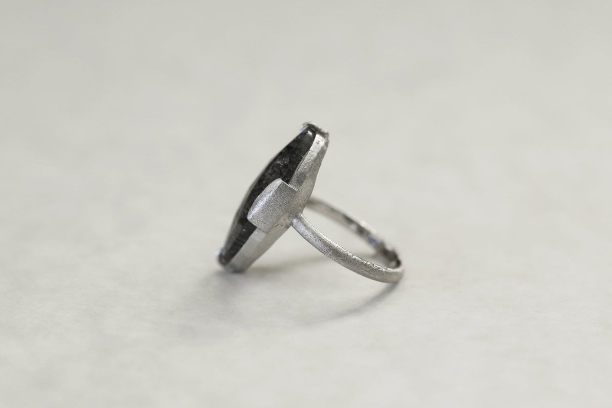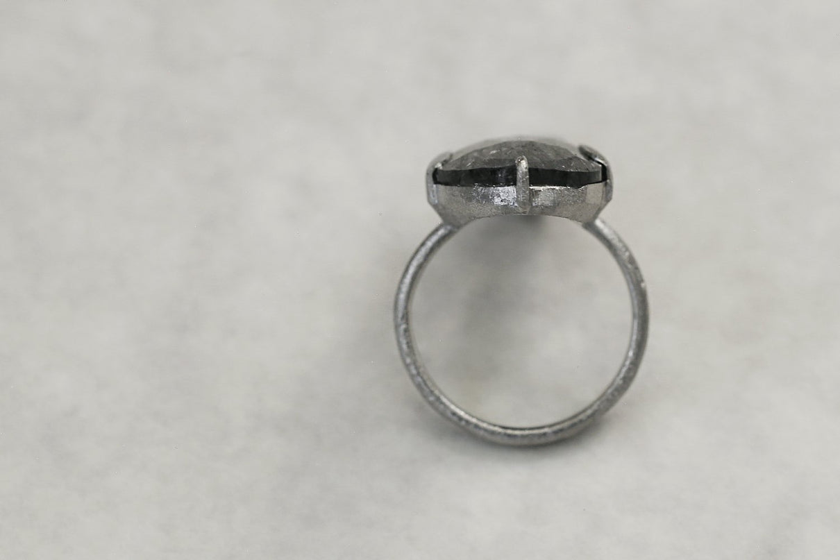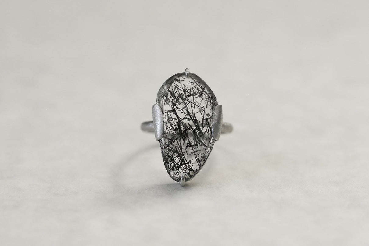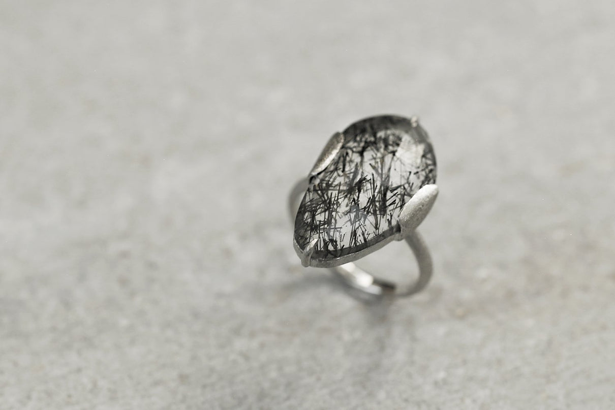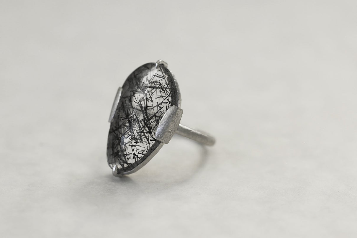 Black rutilated quartz ring / Pt900