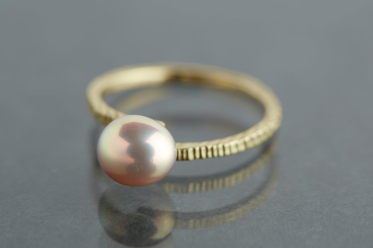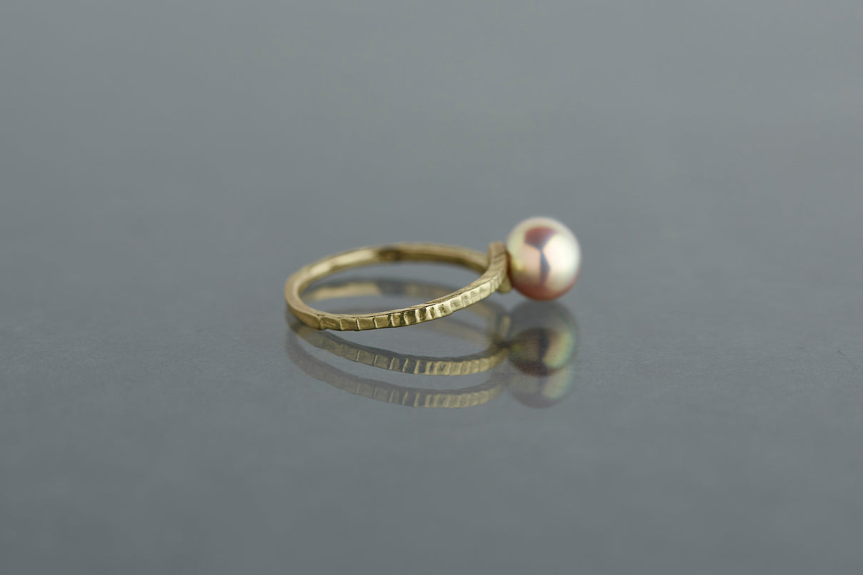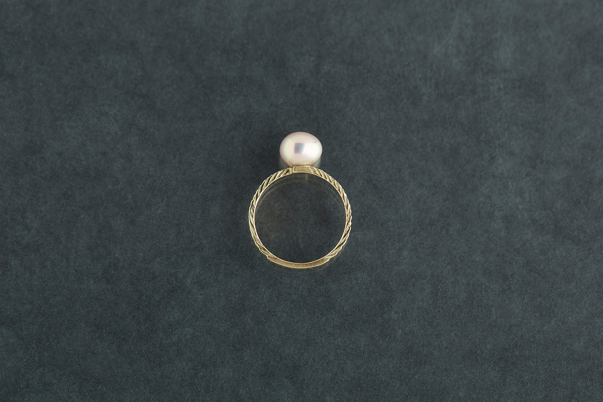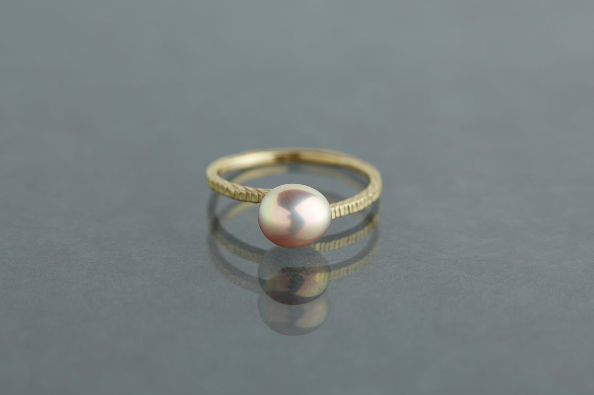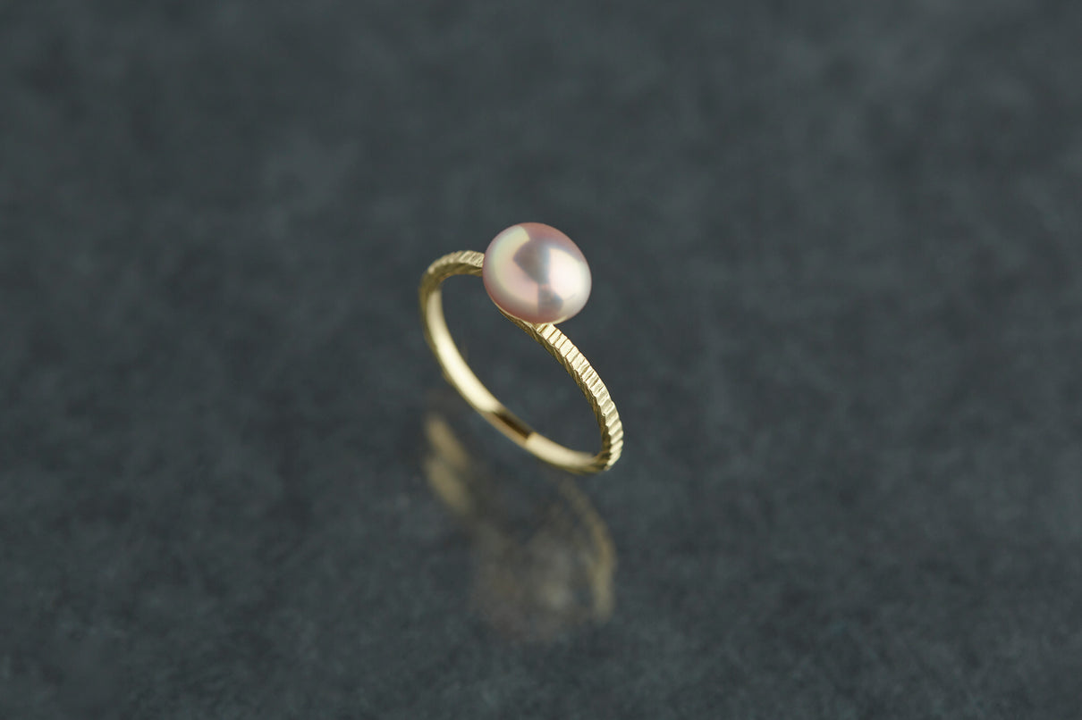 "立ち止まり、目を向ければ 大切なことは 変わらずいつもそこに在る ー" 2023 collection 「Unknown knowns」シリーズのリングベースに、淡水パールの中でも数万個にひとつしか産出されない、希少なメタリックパールを留めた一点もののリング。豊かな自然が育んだたおやかなフォルムのパールは、玉虫色のような奥深い色味が美しく輝き、強い照りが思わず目を惹きます。僅かに左右のアームがずれたデザインで、シンプルながらもひと匙の個性を感じます。ひとつでも重ね付けにも活躍するパールリングです。